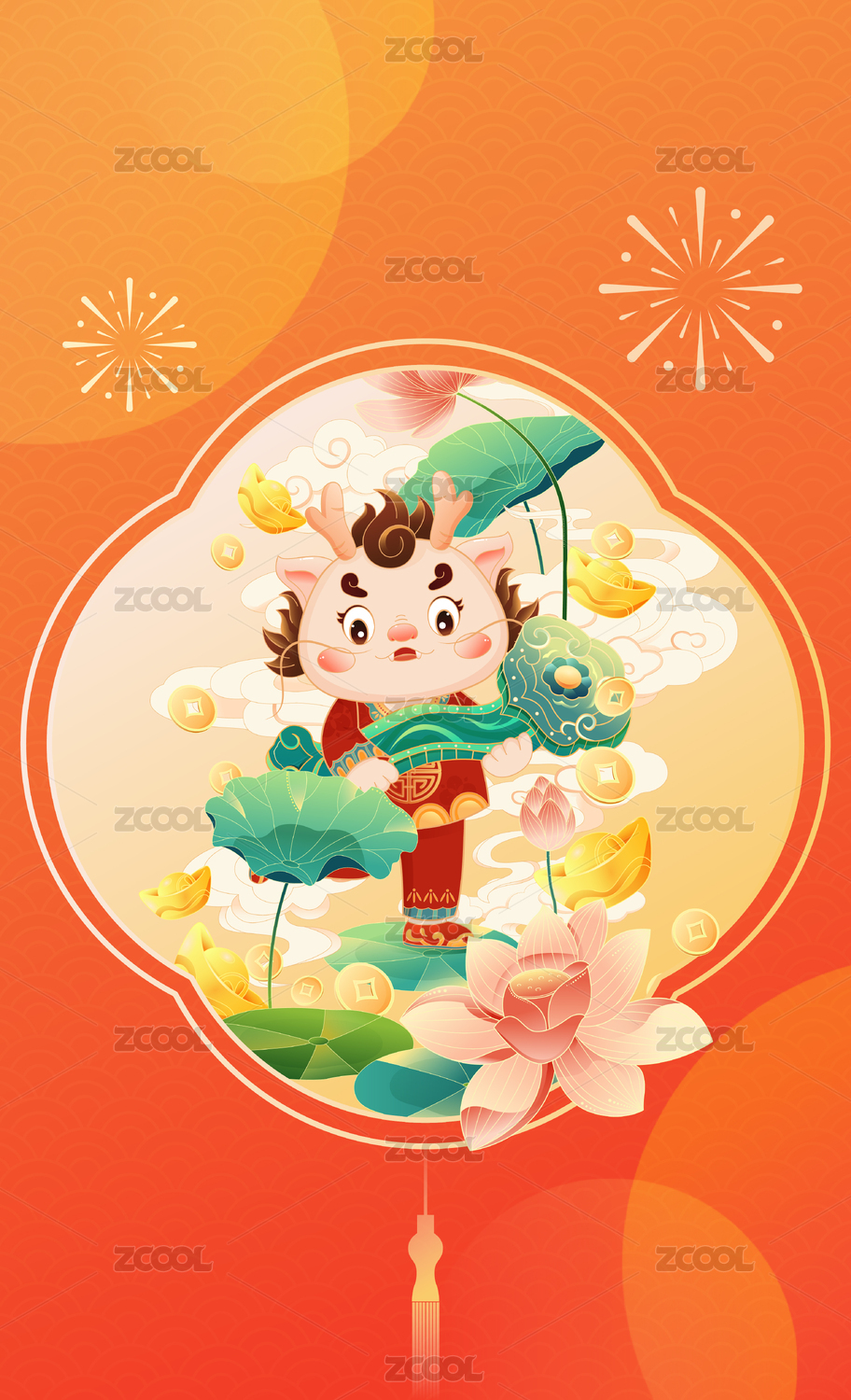 龍年國潮春節(jié)小龍舉蓮子