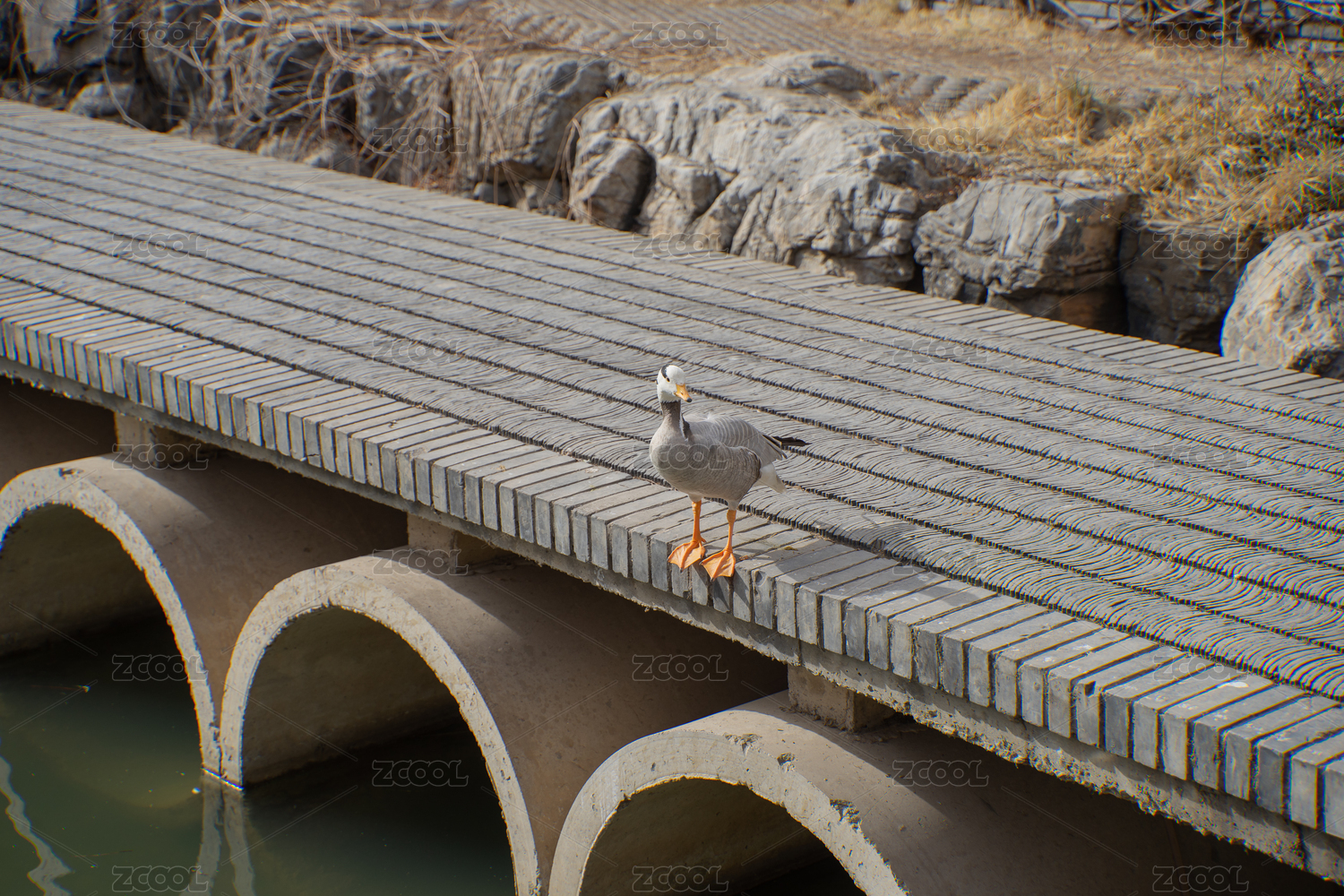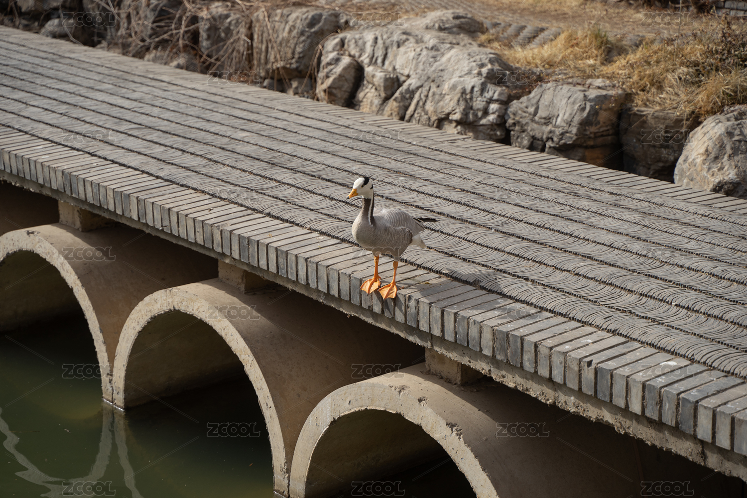 橋邊上的斑頭雁丘陵鵝