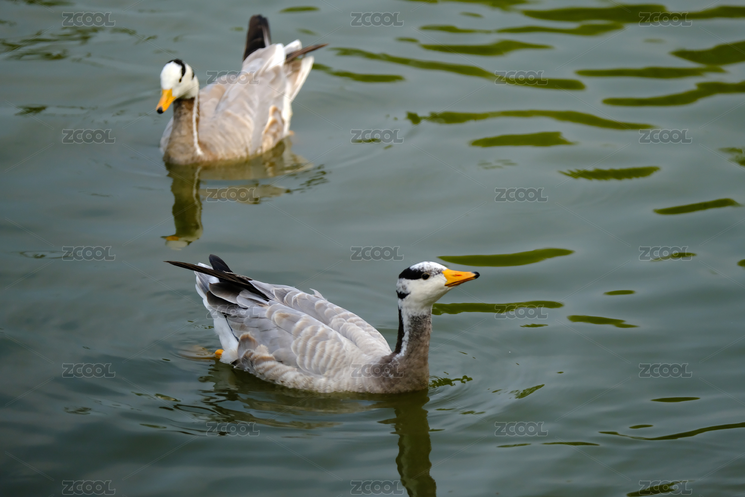 斑頭雁在水面上游水覓食特寫(xiě)