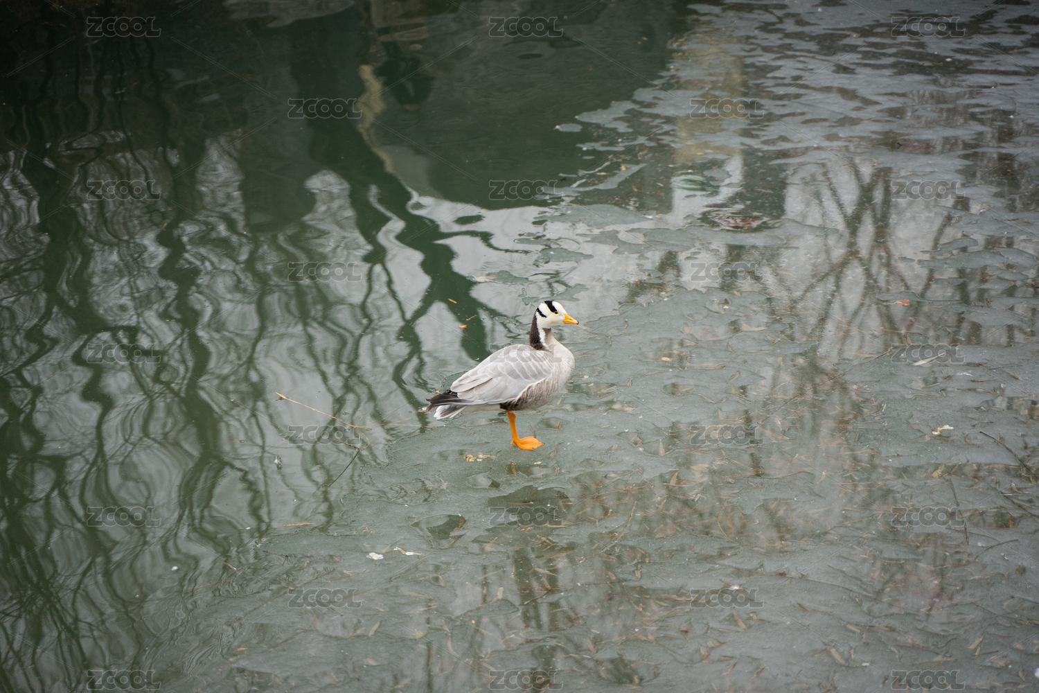 冰面上的斑頭雁丘陵鵝
