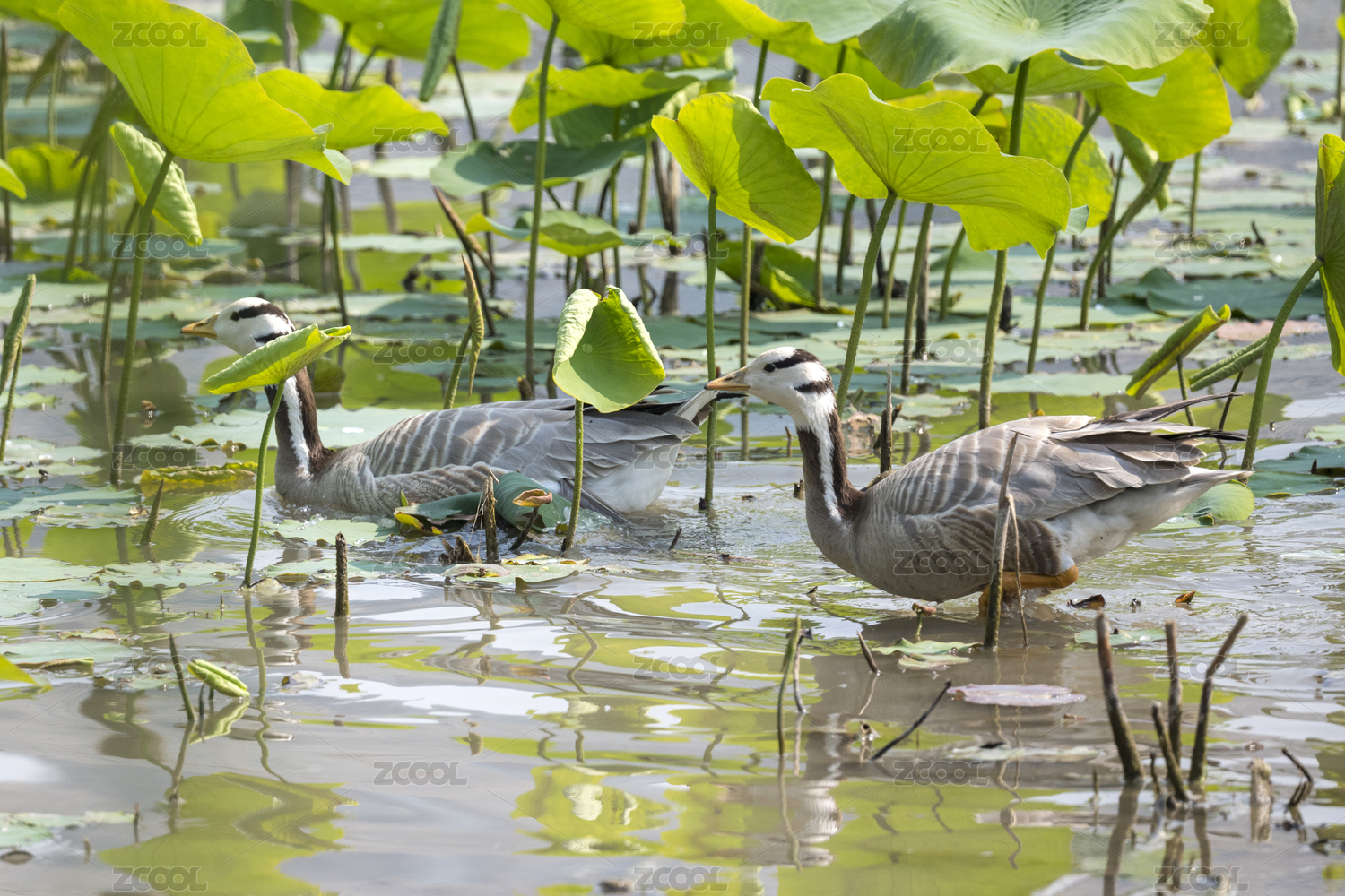 重慶園博園湖水中游弋的斑頭雁