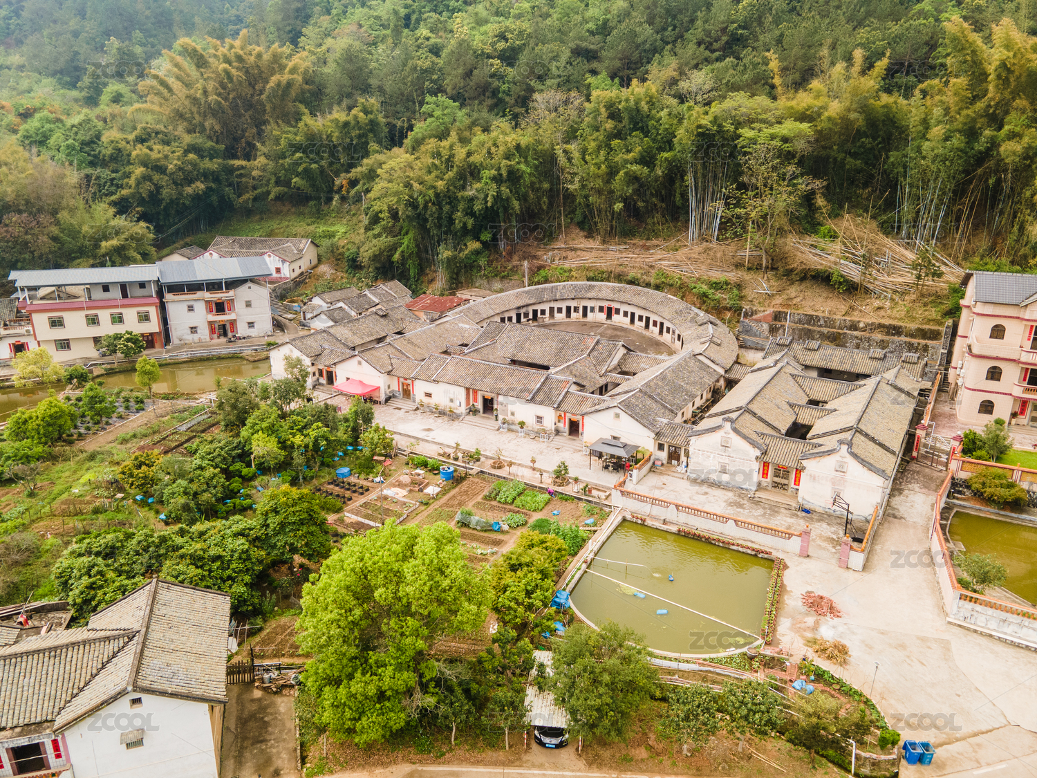 中國廣東梅州客家僑鄉(xiāng)村圍龍屋