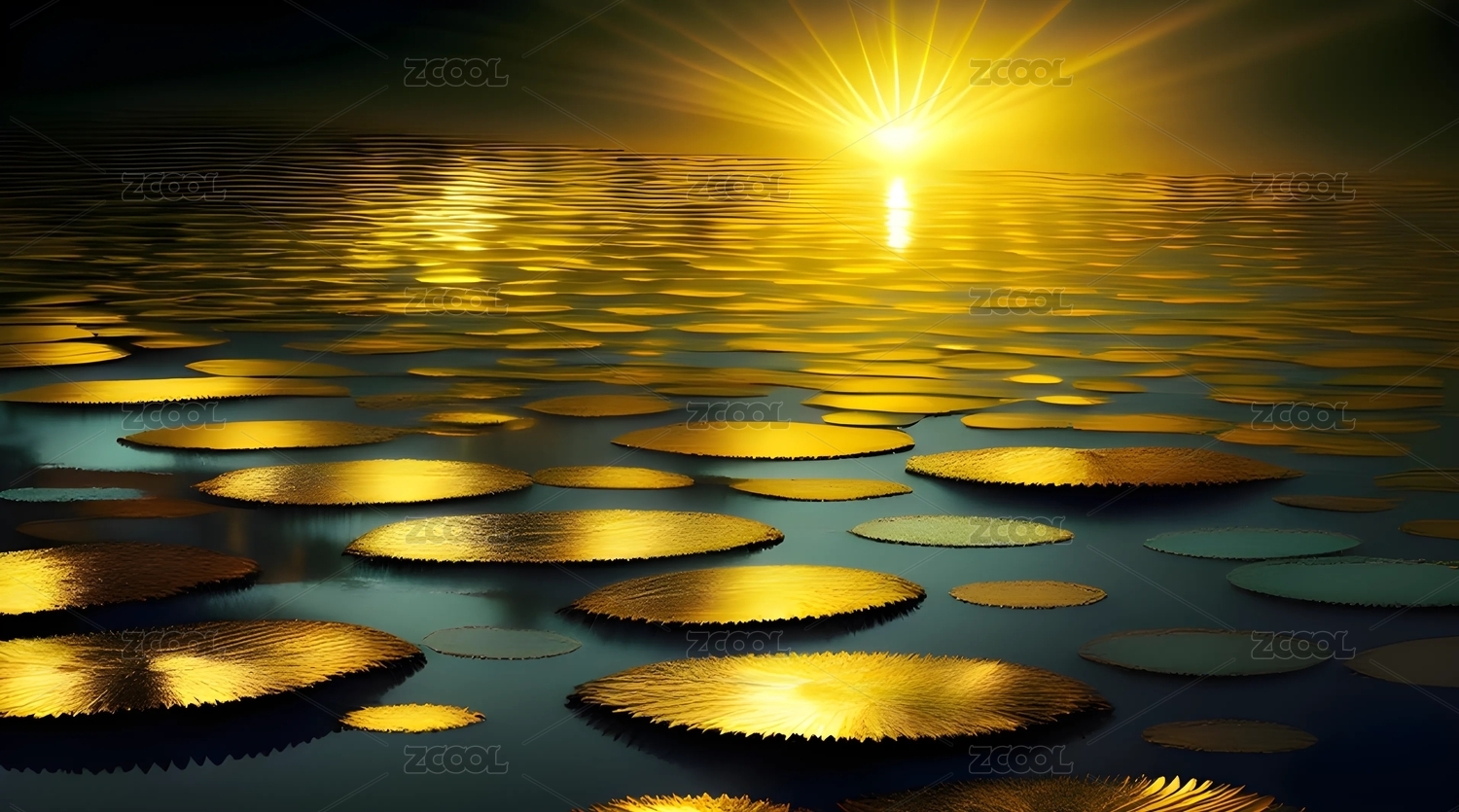 金色蓮葉池塘