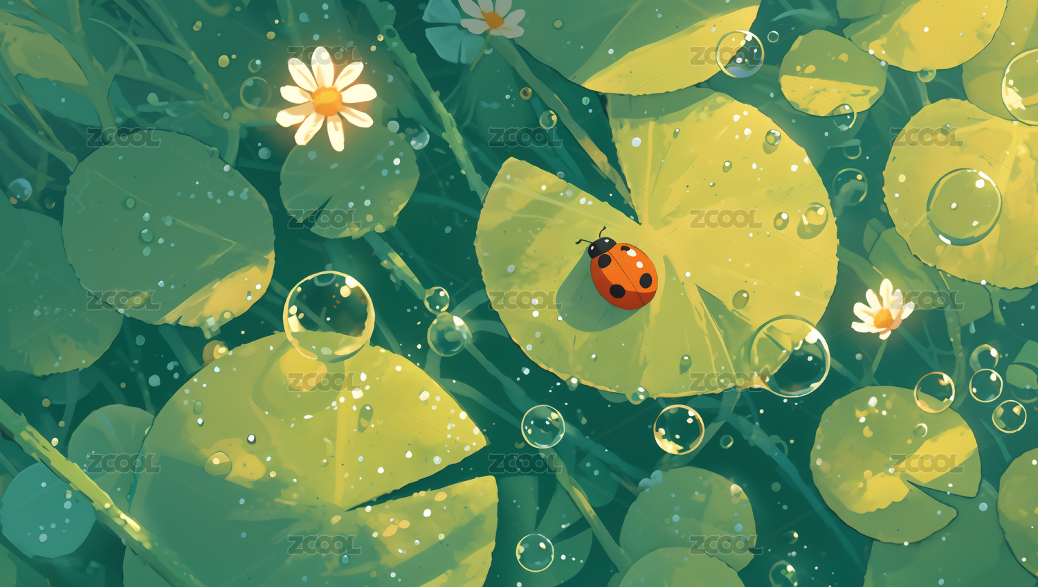 下雨天池溏蓮葉上的瓢蟲