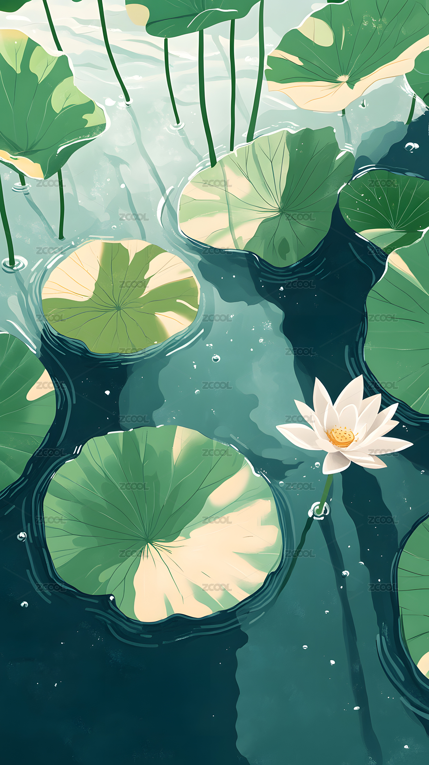 寧靜祥和的蓮葉池塘