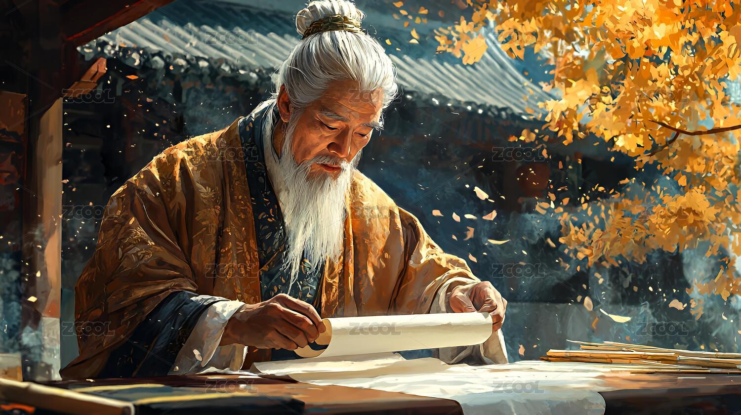 古詩(shī)人秋日?qǐng)@中吟詩(shī)