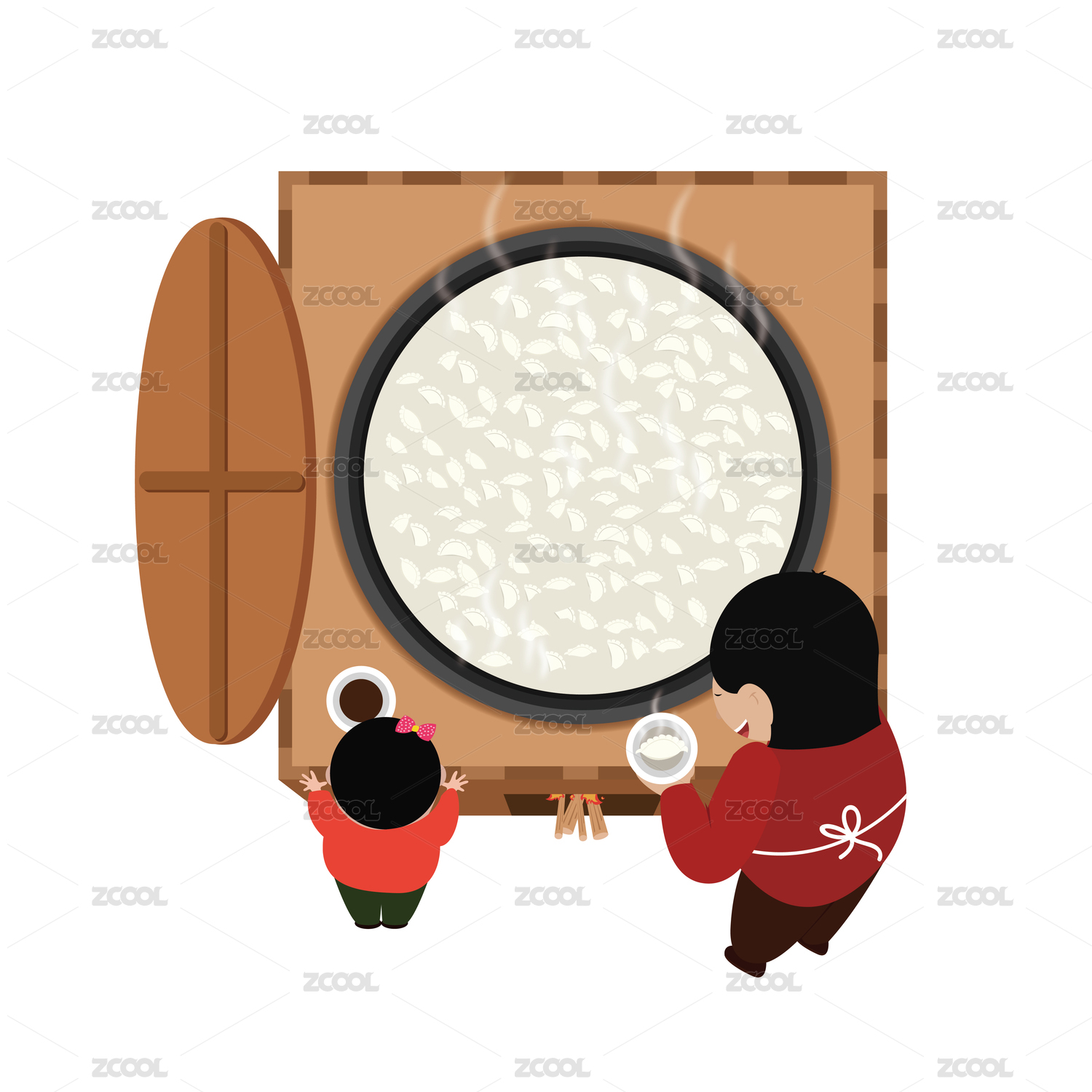 煮餃子插畫素材