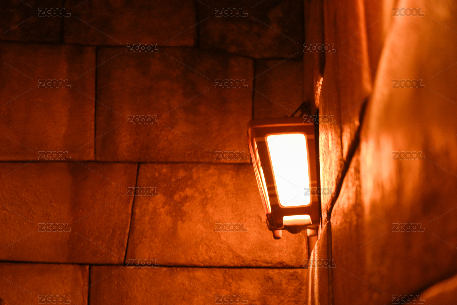 照亮石墻的暖光壁燈