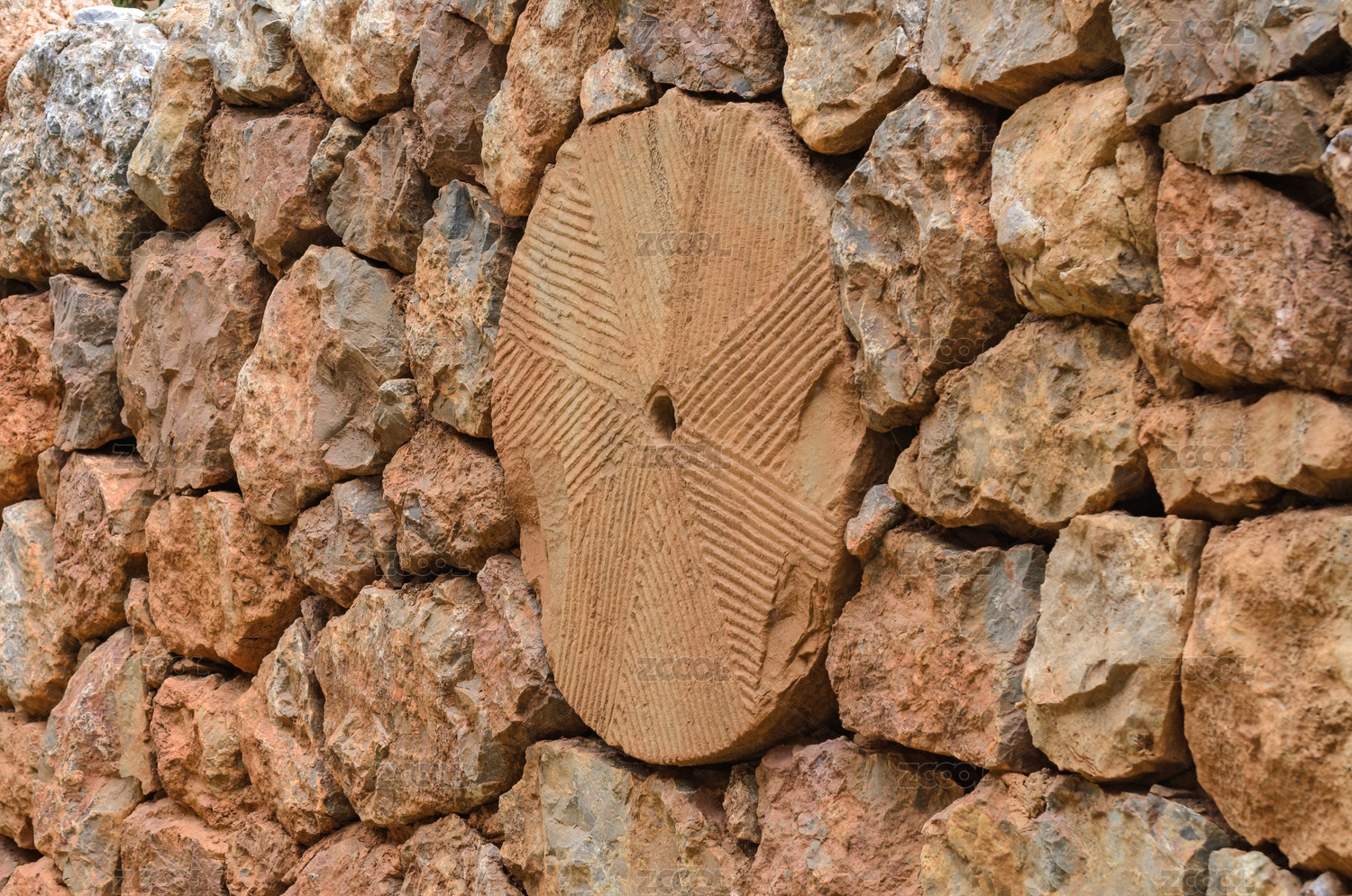 嵌有磨盤的石墻
