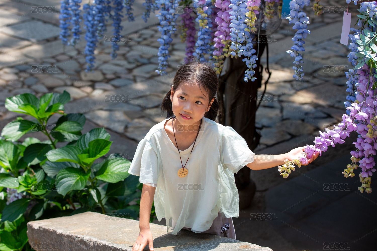 小女孩 臺階 傳統(tǒng)建筑 門窗 石墻 庭院
