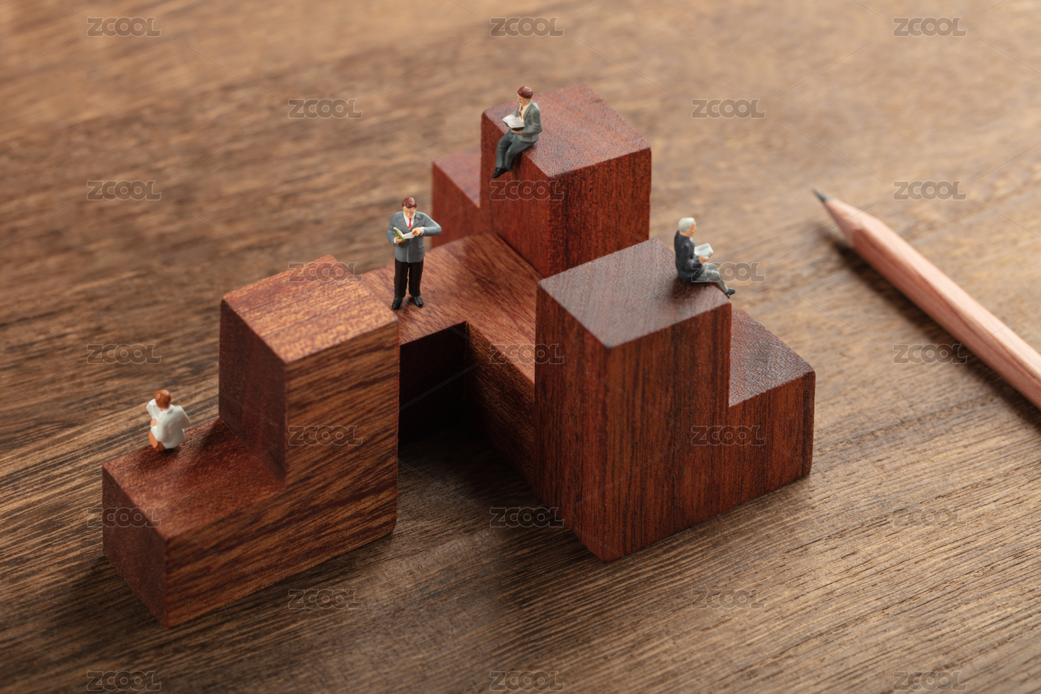 微縮創(chuàng)意原木幾何形狀讀書的人