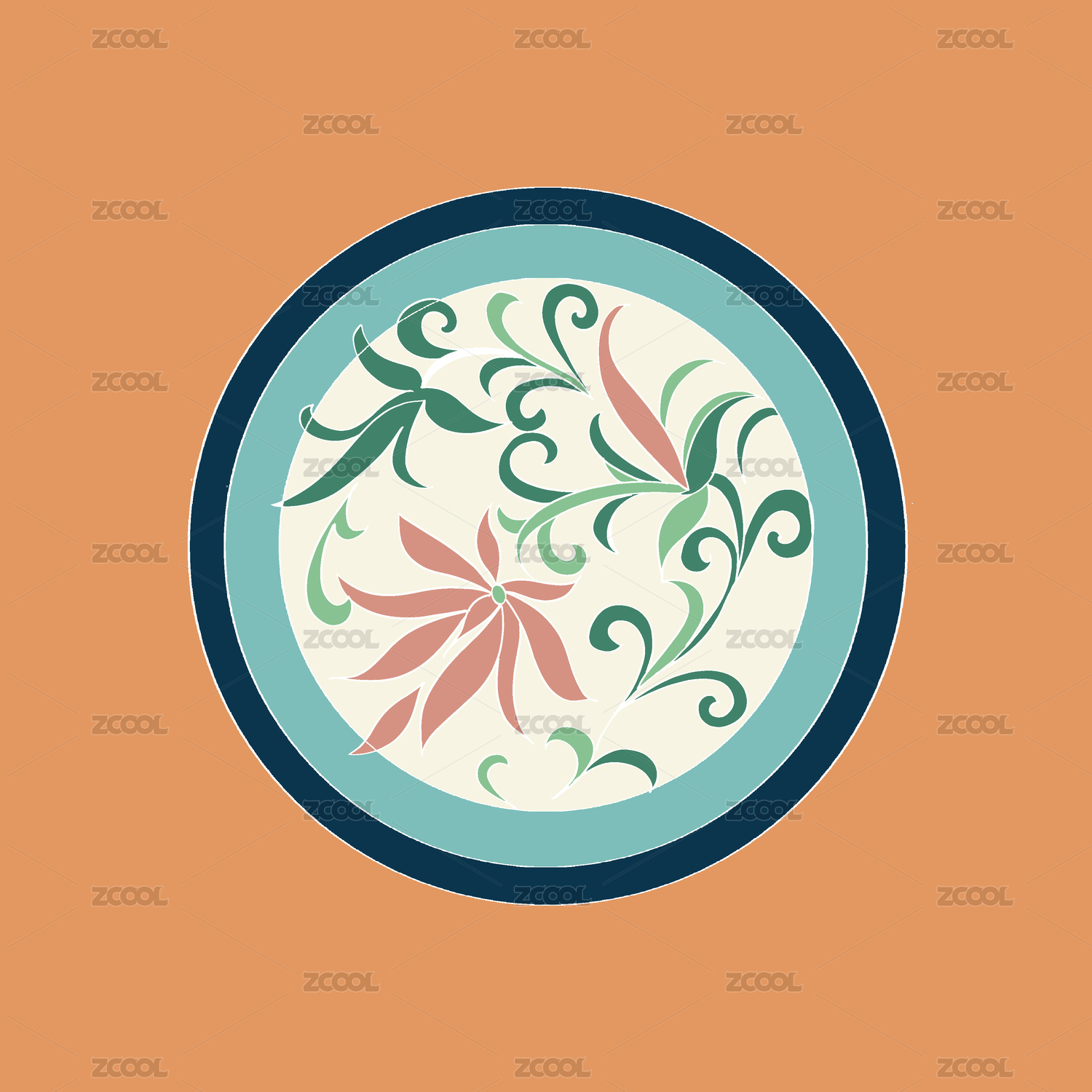珊瑚紅牡丹蓮花菊花吉祥長(zhǎng)壽中國(guó)紋樣插畫