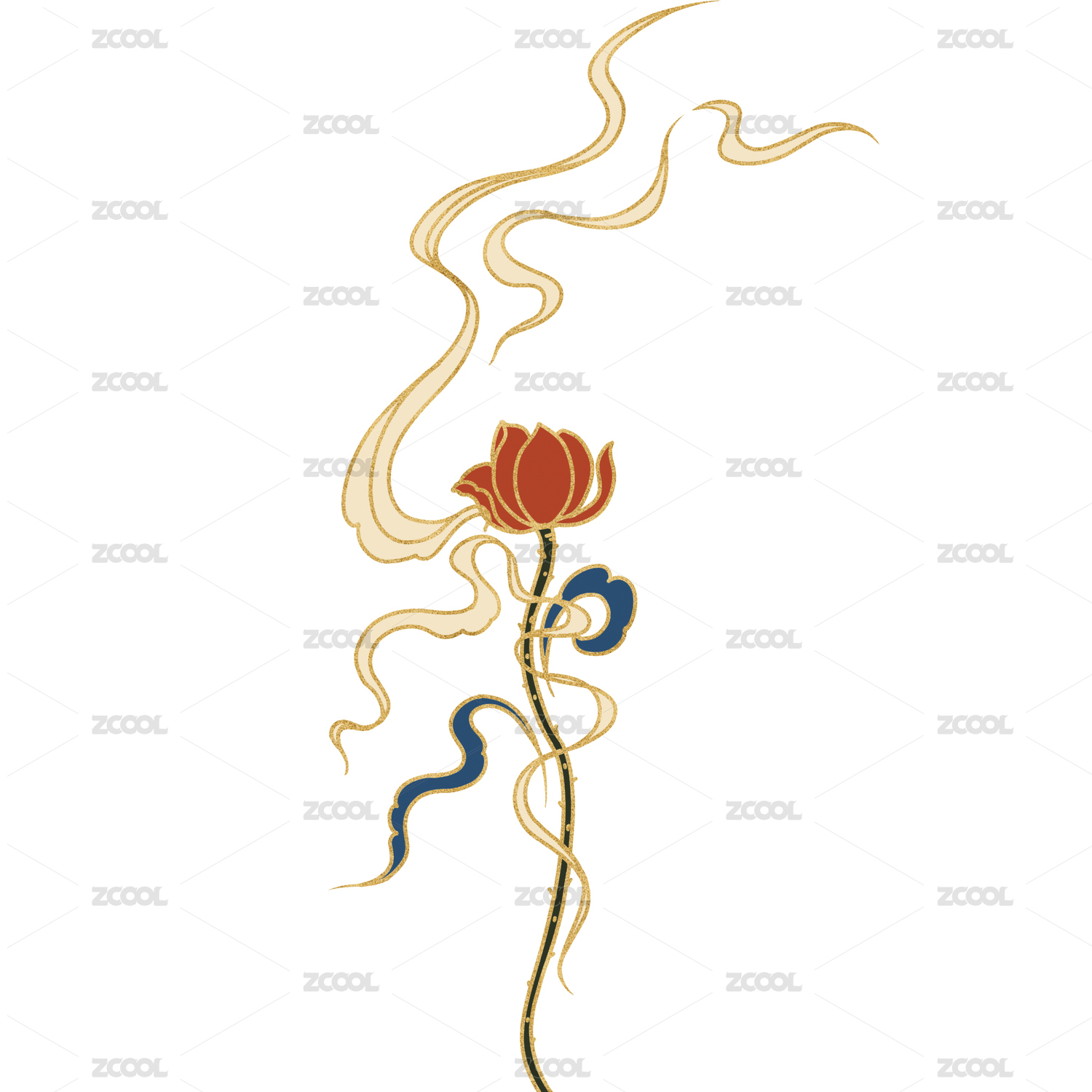 燈籠銅錢蓮花祥云富貴福壽吉祥紋樣國(guó)潮插畫