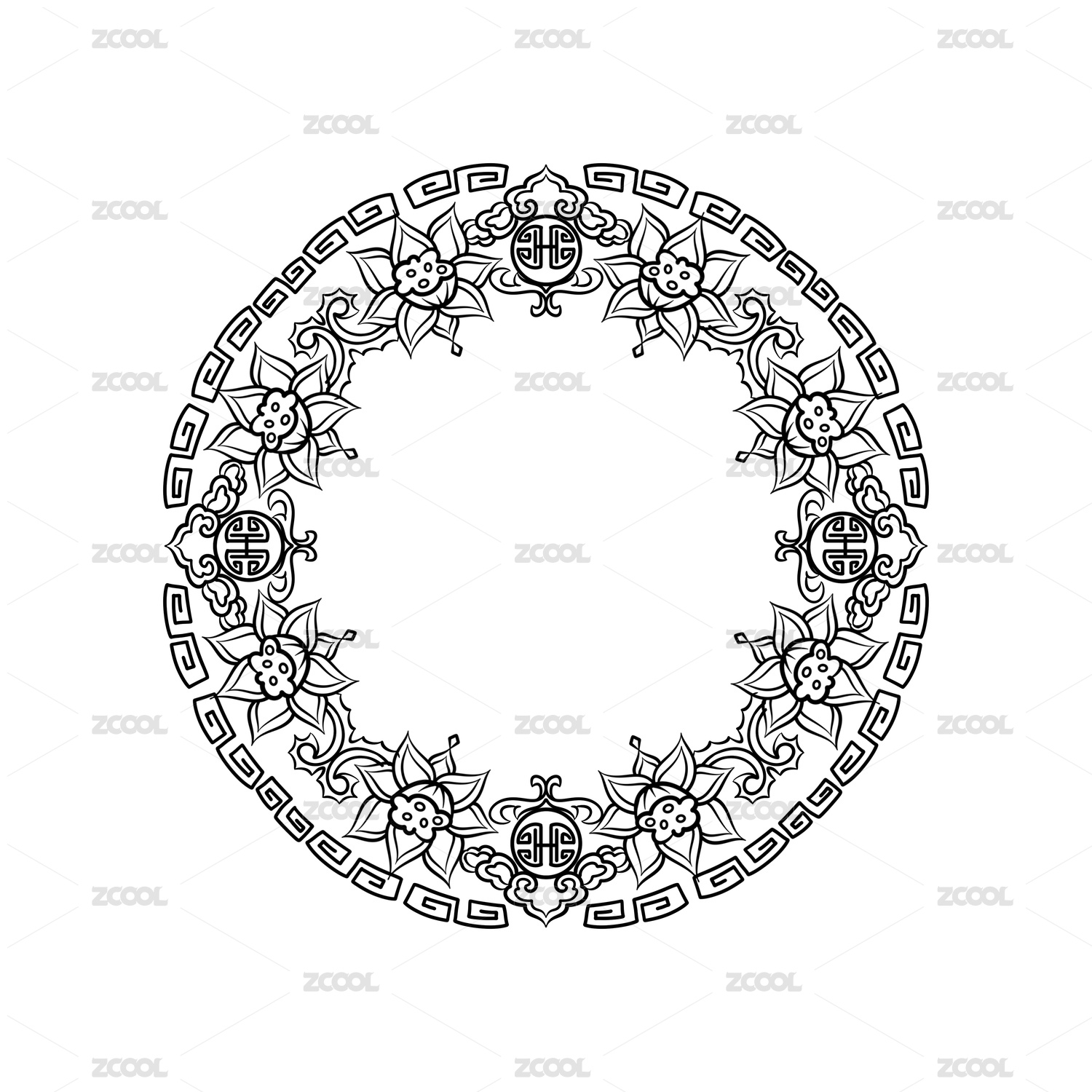 傳統(tǒng)吉祥如意蓮花紋樣圖案元素素材