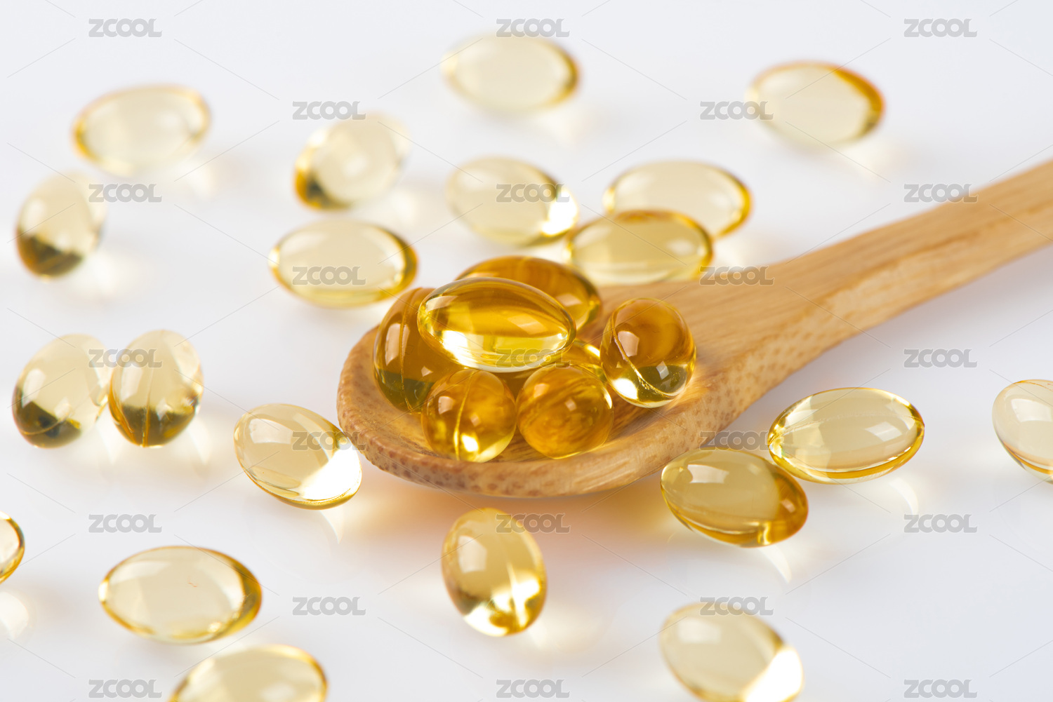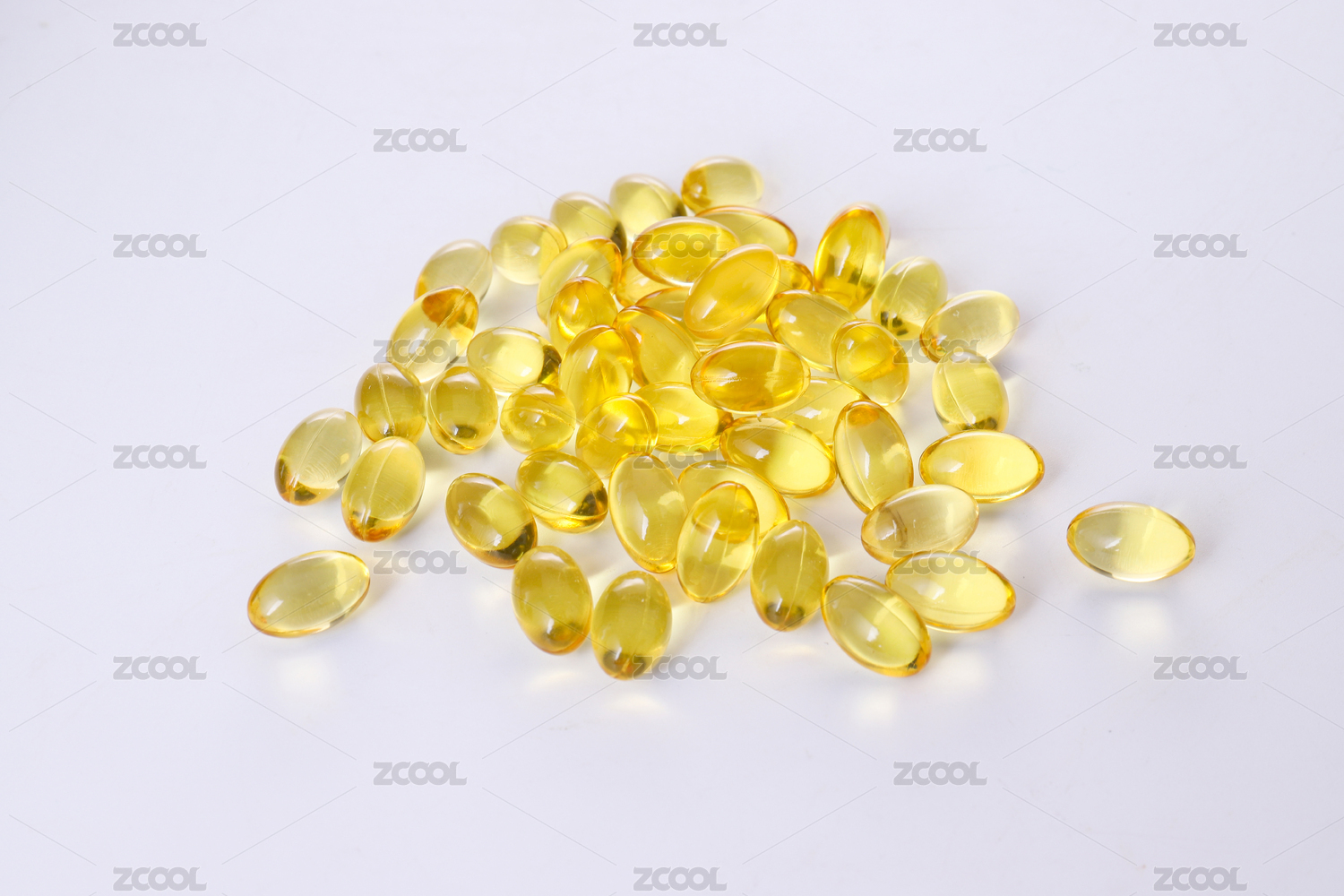 白色背景上的黃色透明維E膠囊