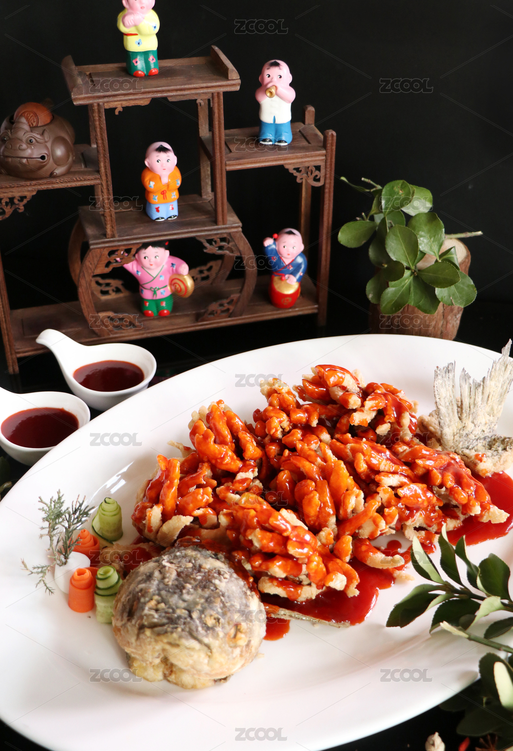 江蘇特色美食白色盤子上的松鼠鱸魚