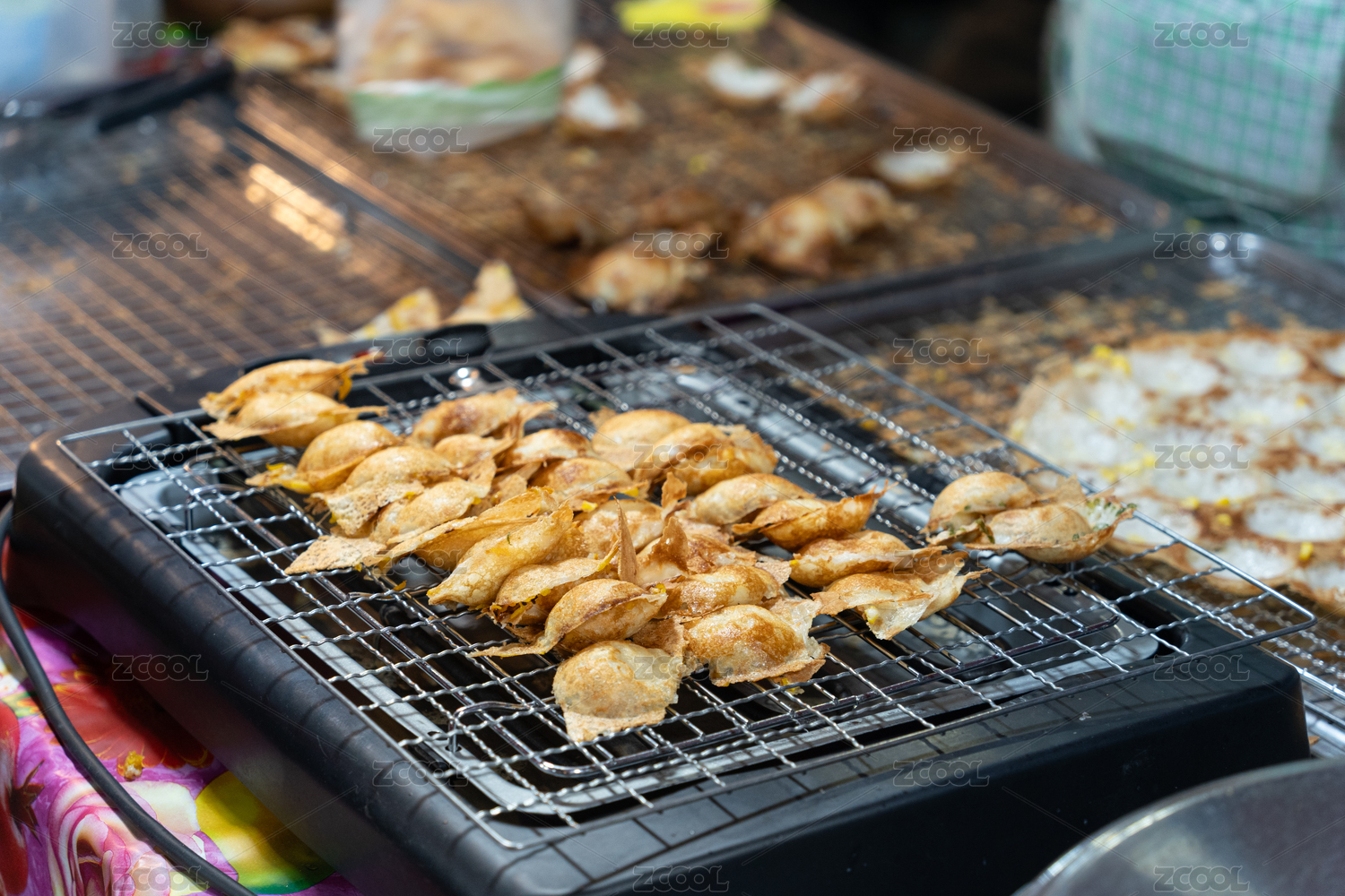 清邁街頭美食攤位烤架上的椰子小松餅