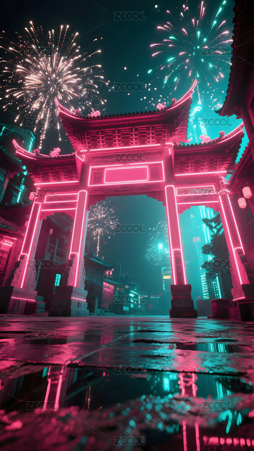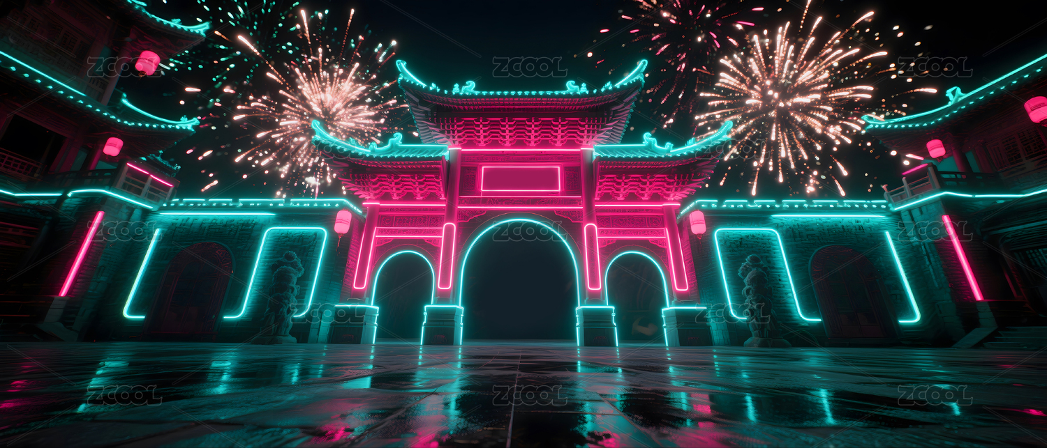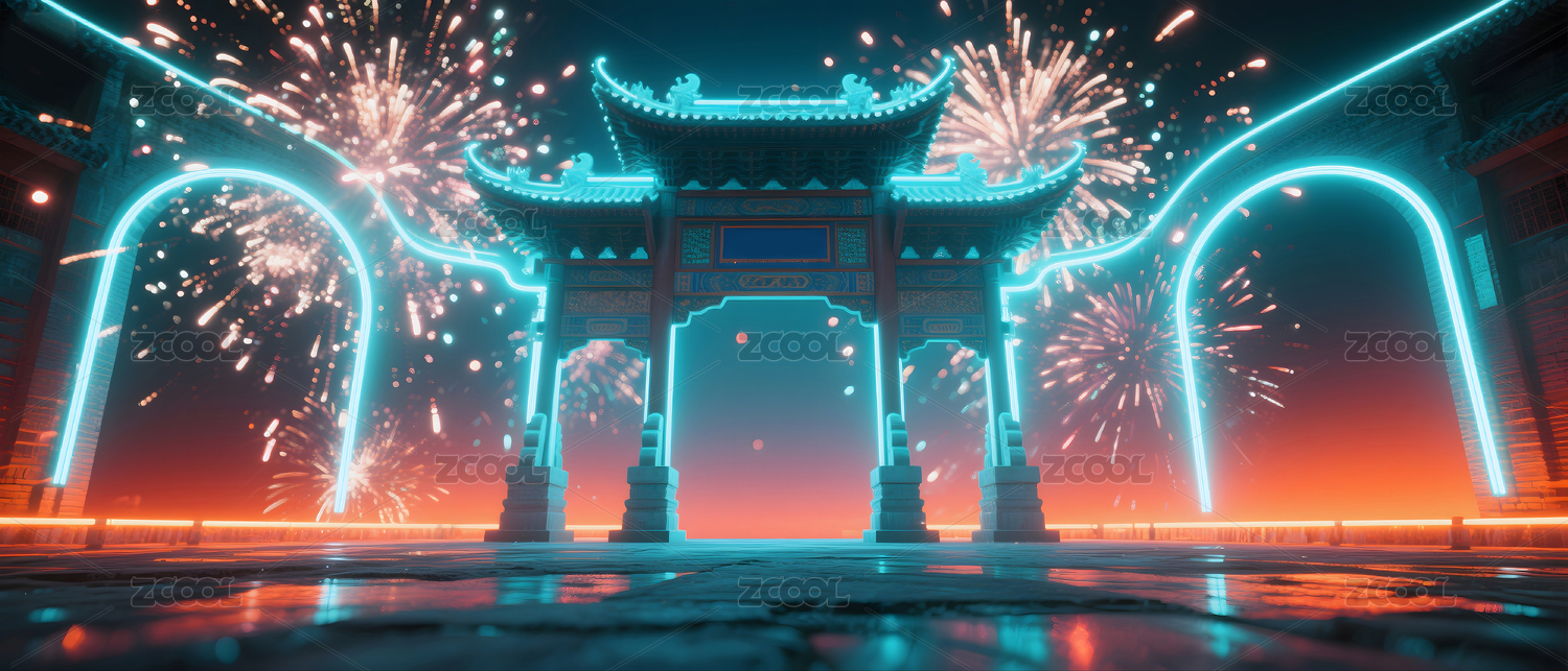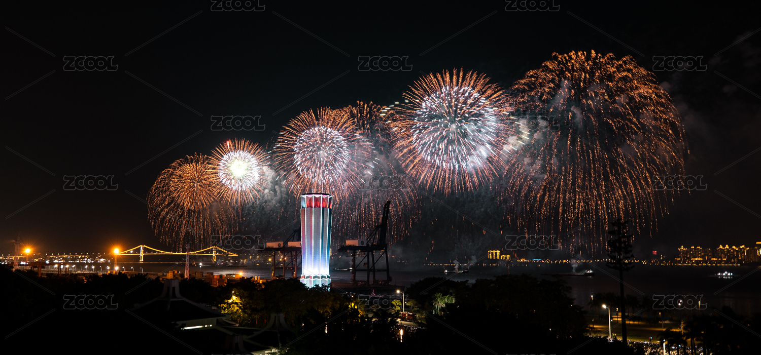 歡慶新春時節(jié)幸福的一家三口看煙火