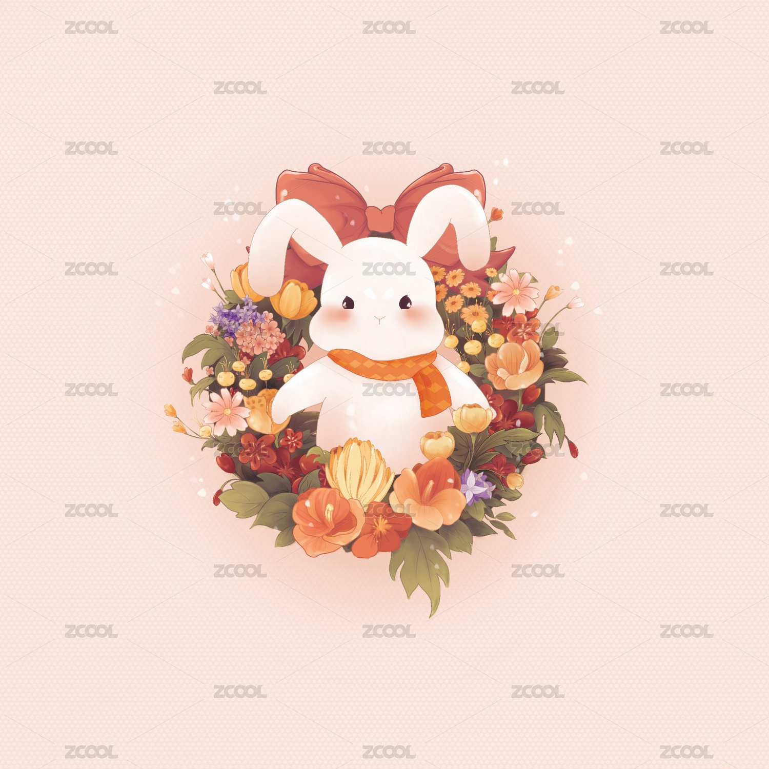 原創(chuàng)溫暖插畫:花環(huán)里的小兔子