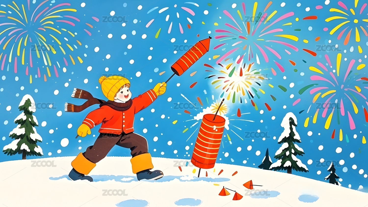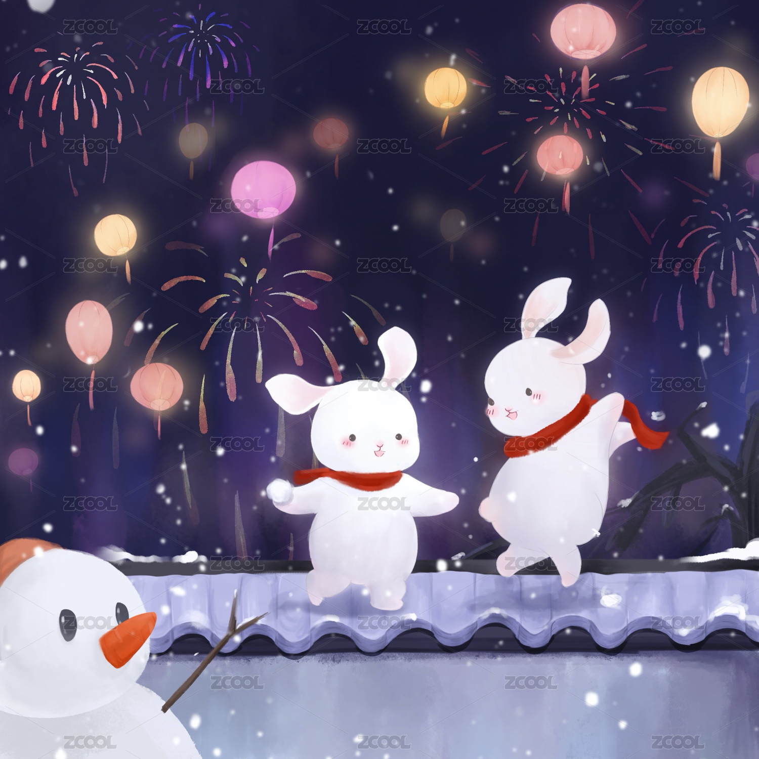 原創(chuàng)溫暖插畫:煙花燈火里的小兔子