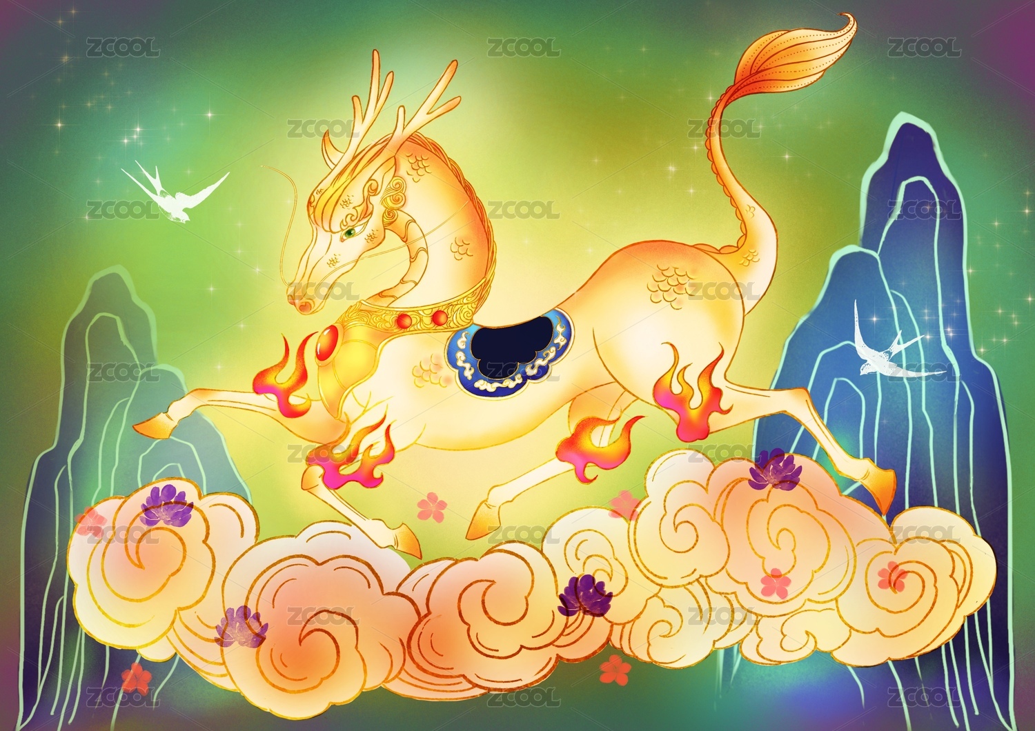 中國風(fēng)卡通馬龍馬精神舞龍年俗節(jié)日慶典
