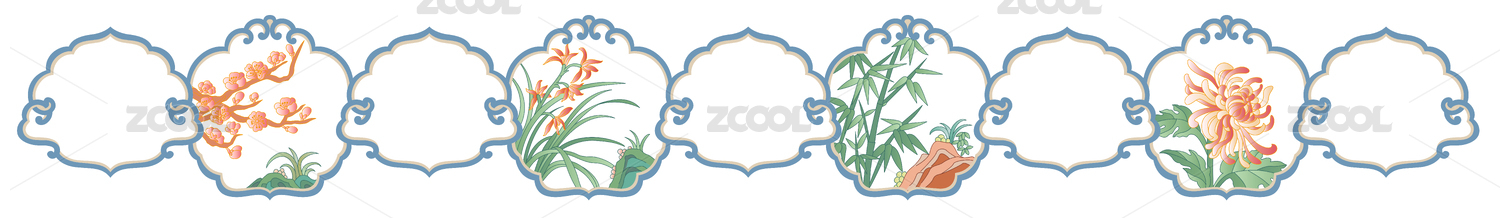 梅蘭竹菊古典邊框花紋,橫向圖案