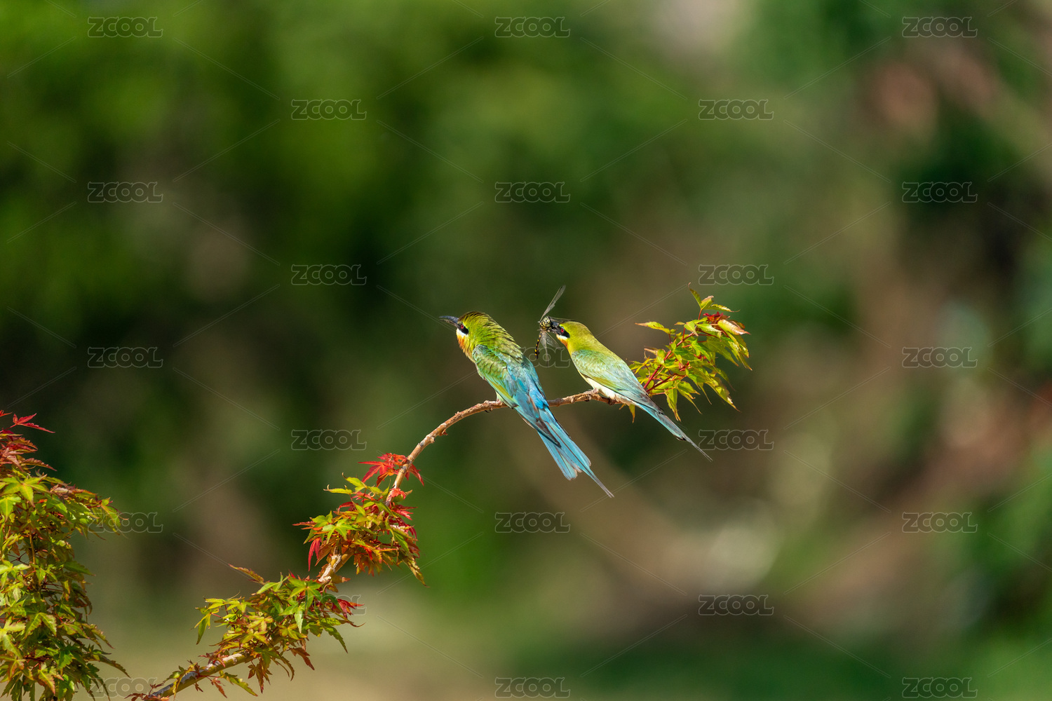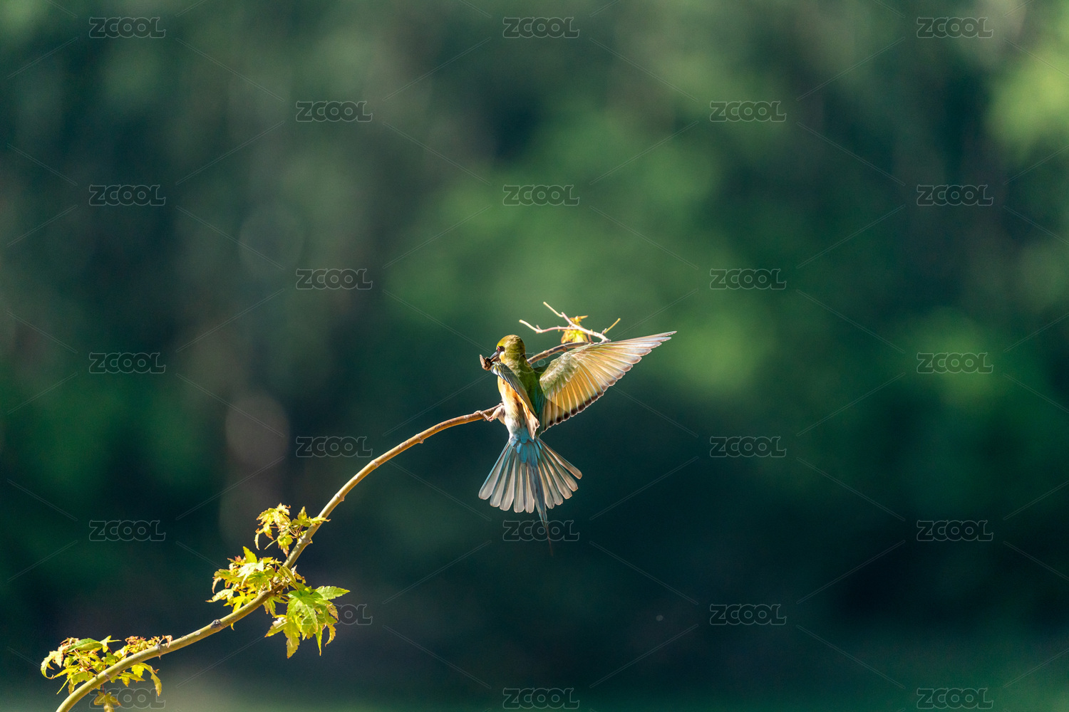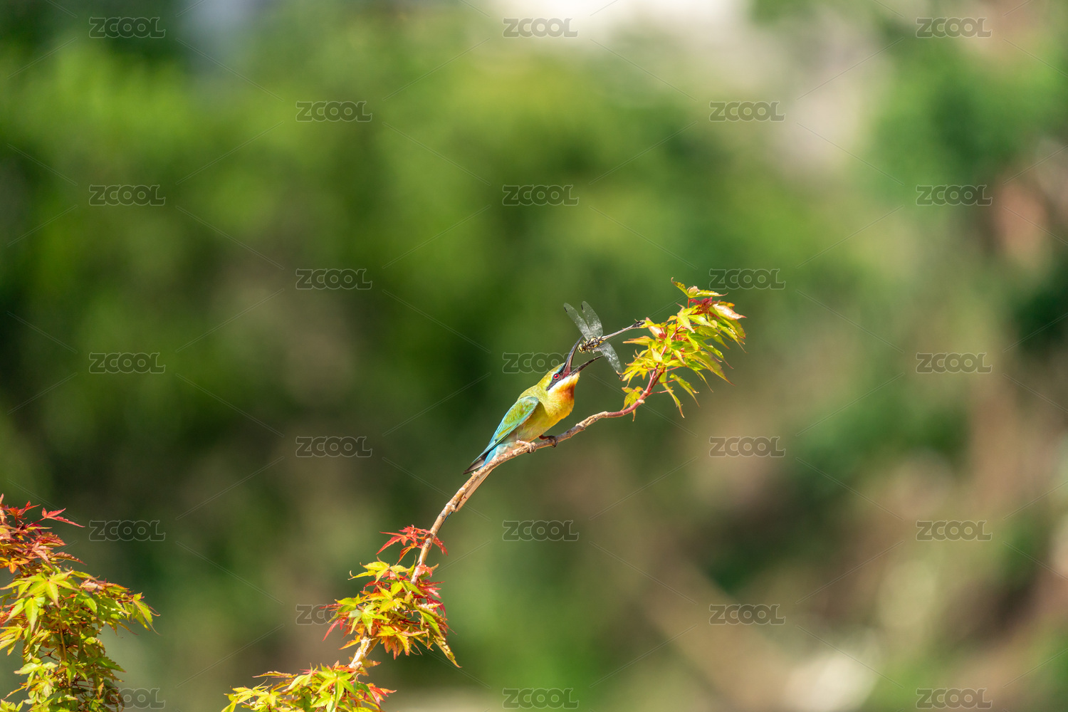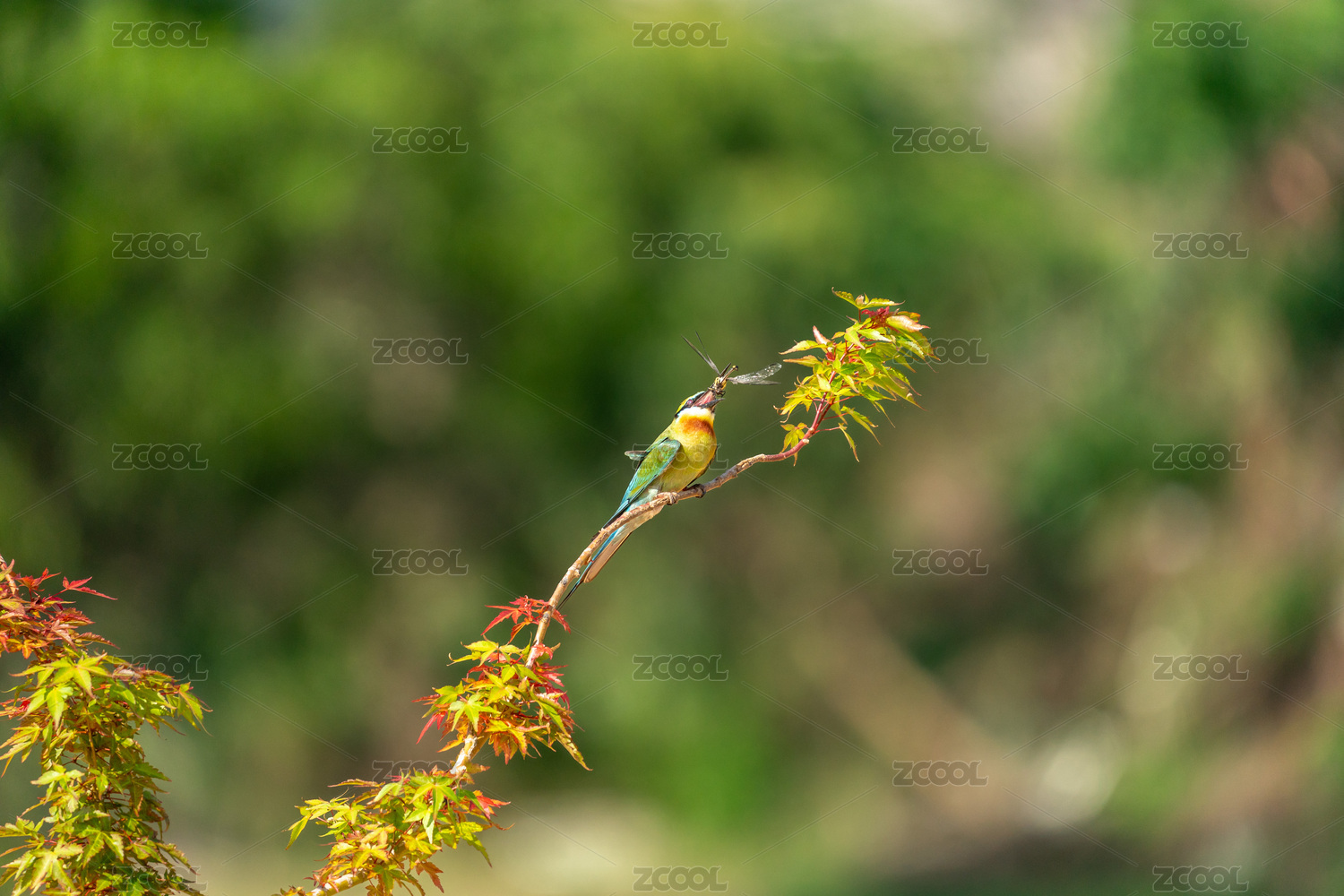 栗喉蜂虎鳥在枝頭棲息捕食昆蟲的精彩瞬間