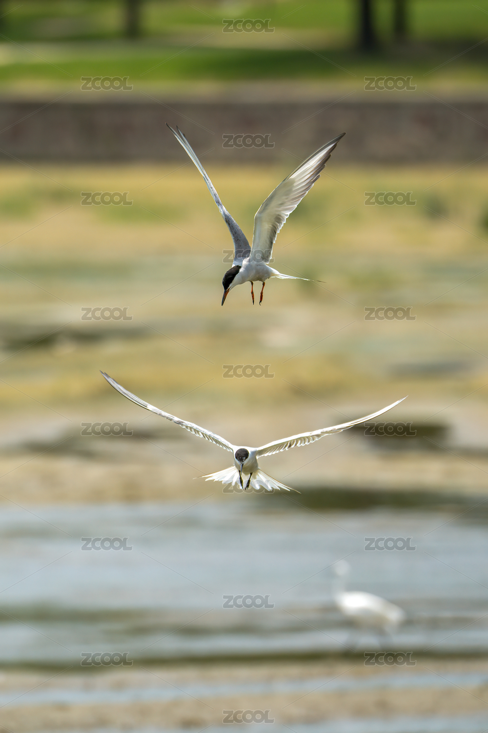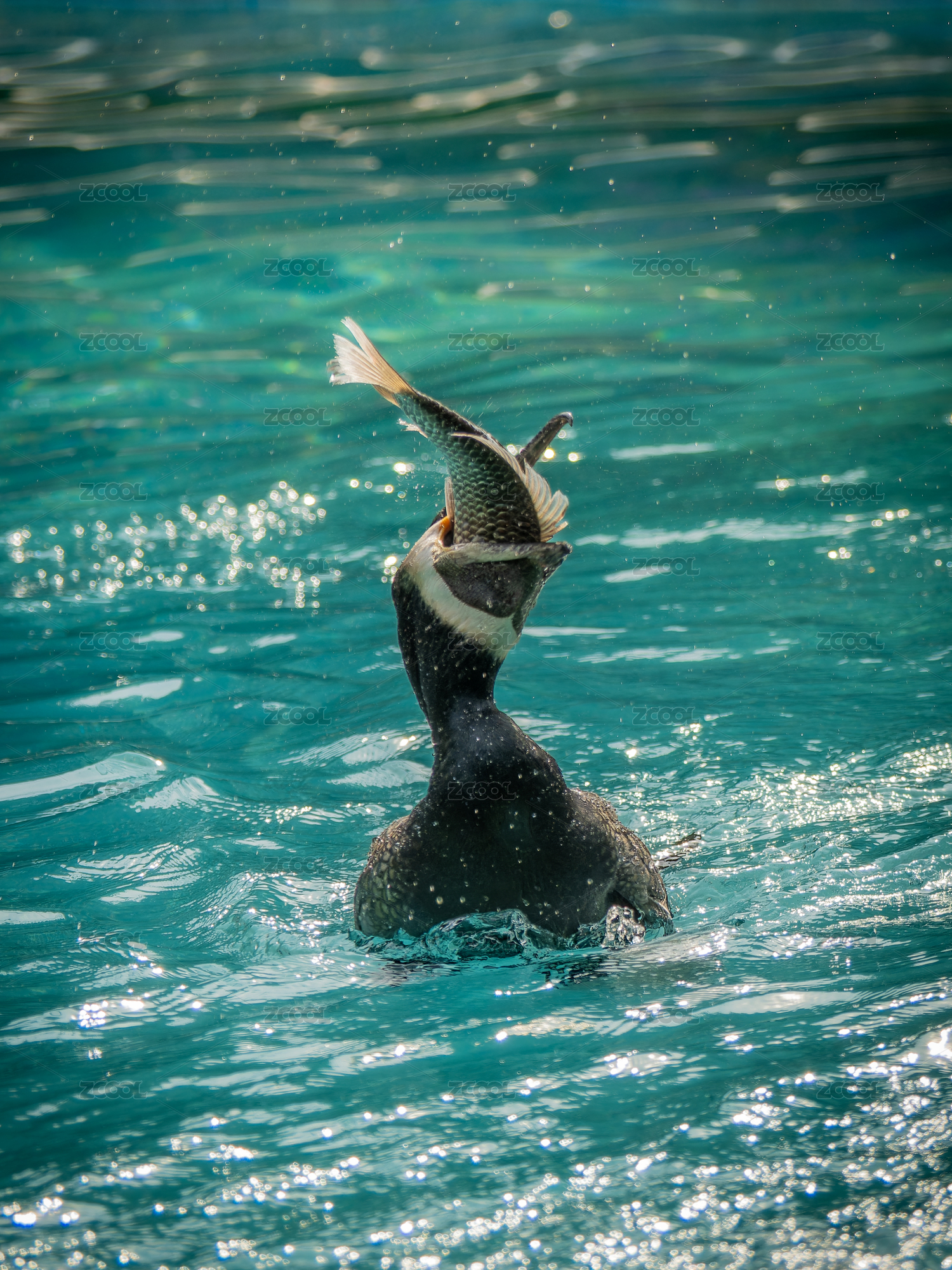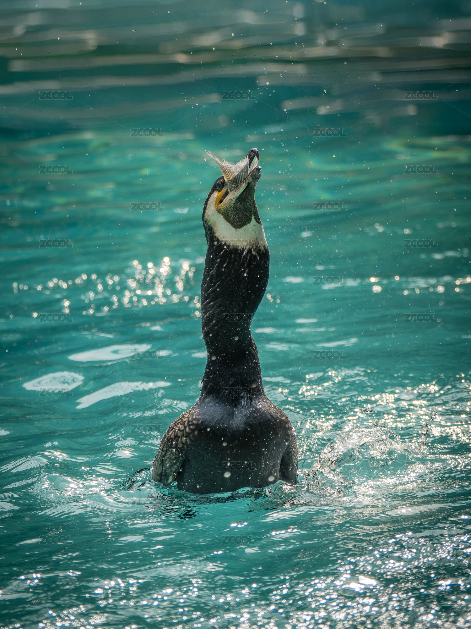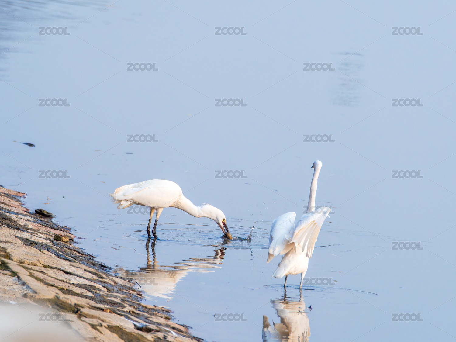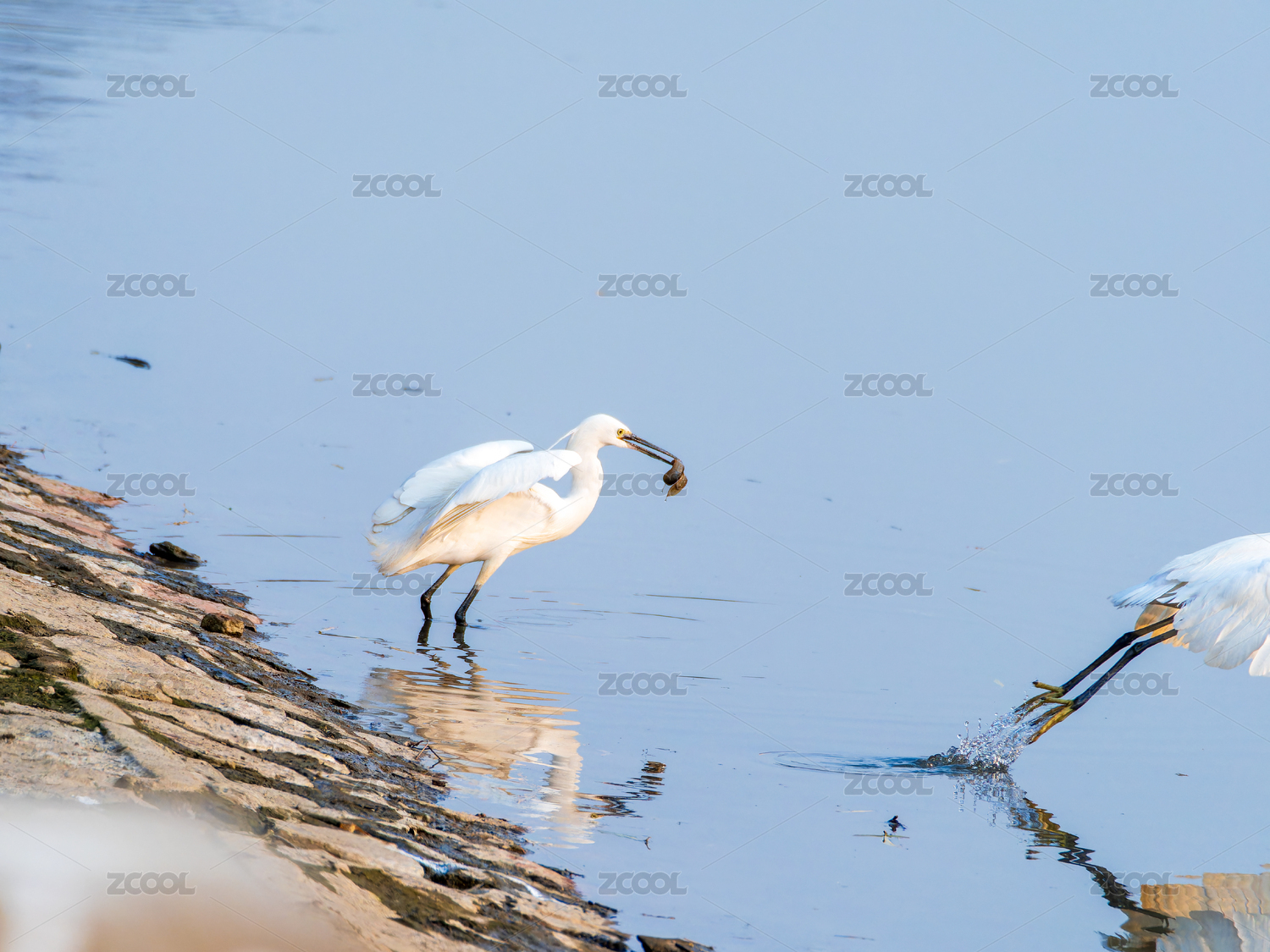 海鷗在海面上低空飛翔扎進(jìn)水里捕食餅干