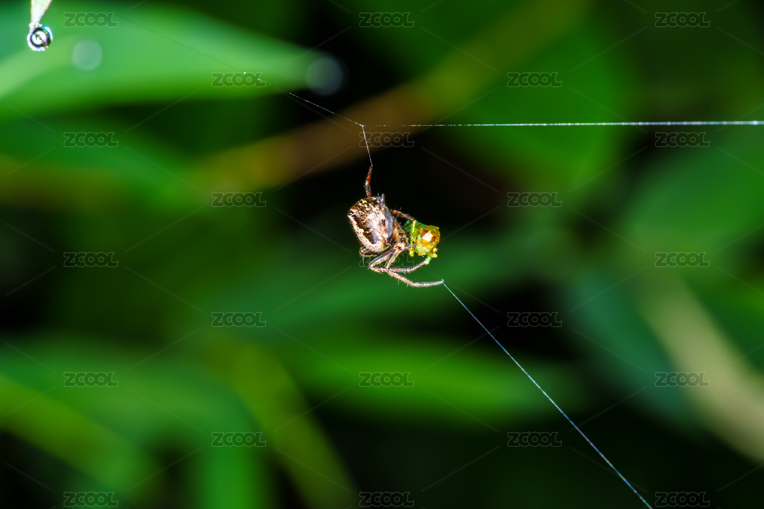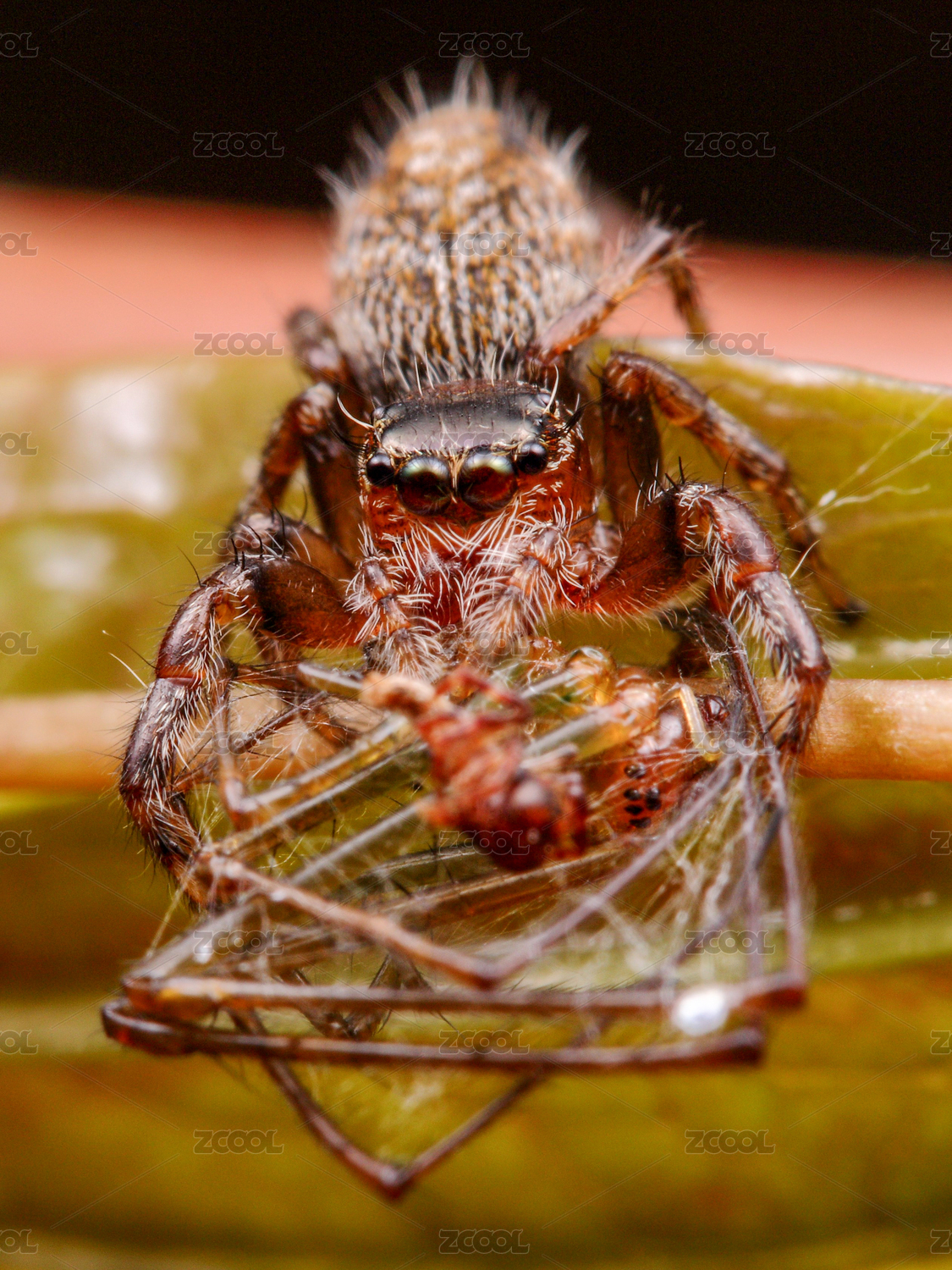 蜘蛛在蛛網(wǎng)上捕食的微距特寫