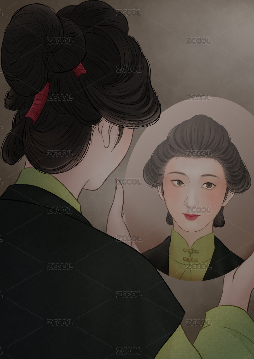 一個(gè)明朝女人在喝飲料的插畫(huà)