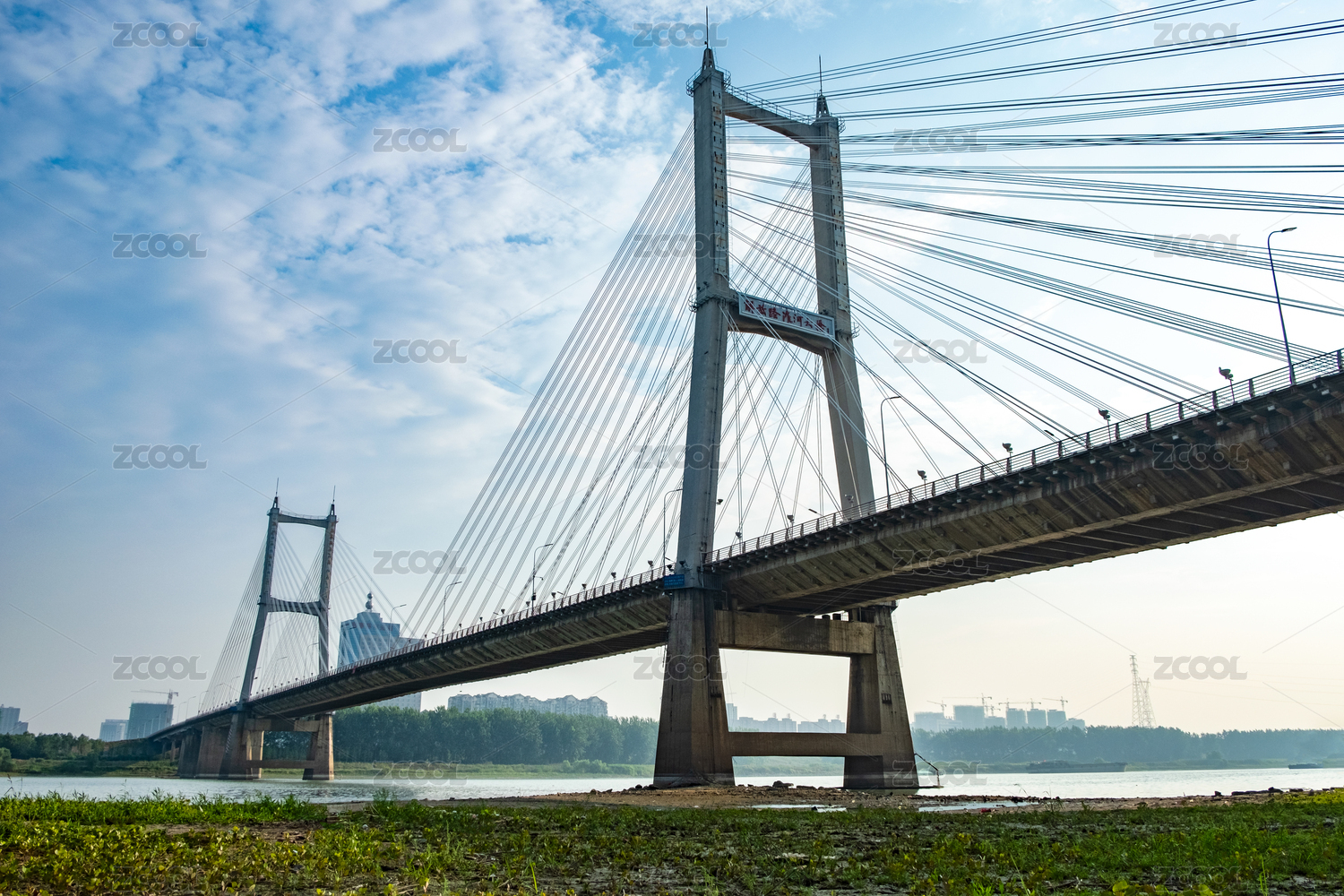 晴朗天空下的中國(guó)安徽省蚌埠市解放路淮河公路大橋遠(yuǎn)景
