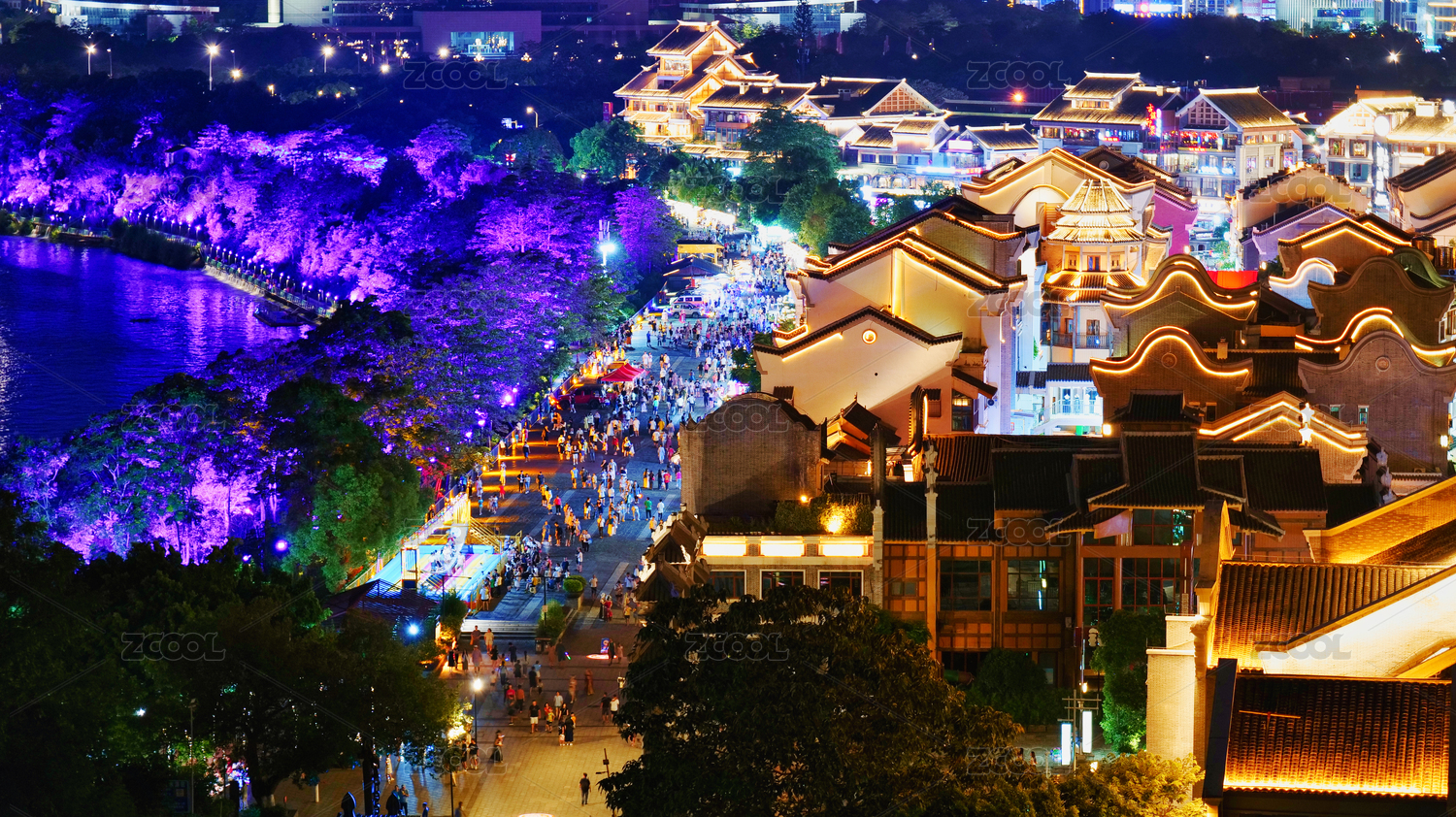 中國(guó)廣西柳州夜景,夜間的文廟建筑