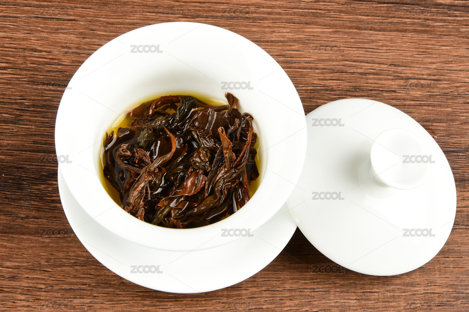 蓋碗中灰枯色茶葉的茶底