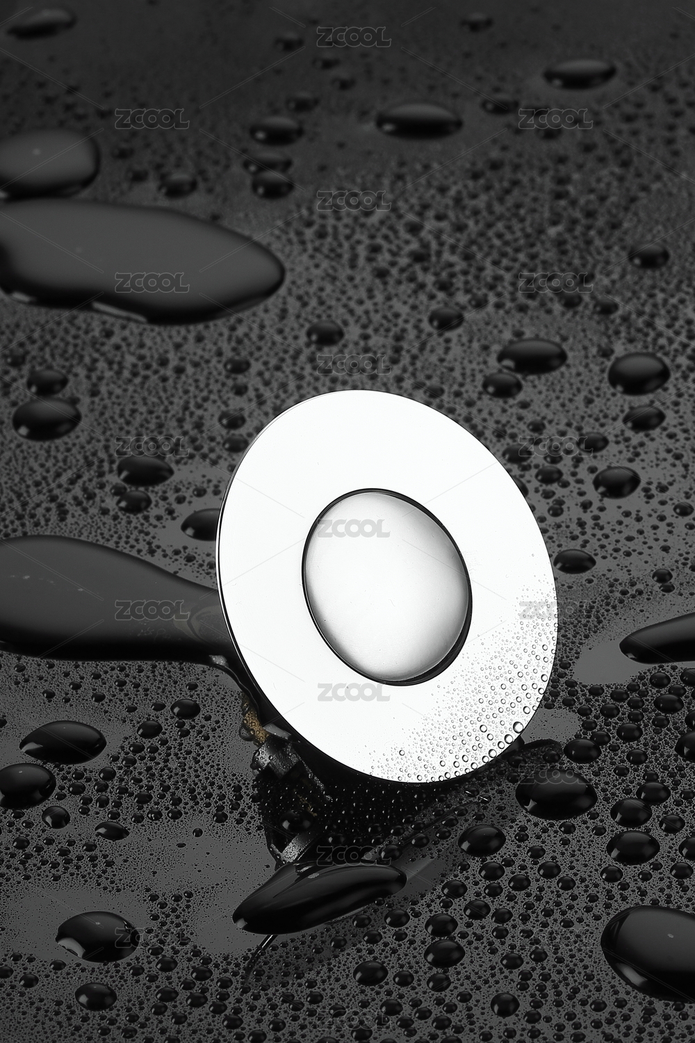 不銹鋼下水器特寫在黑色玻璃上
