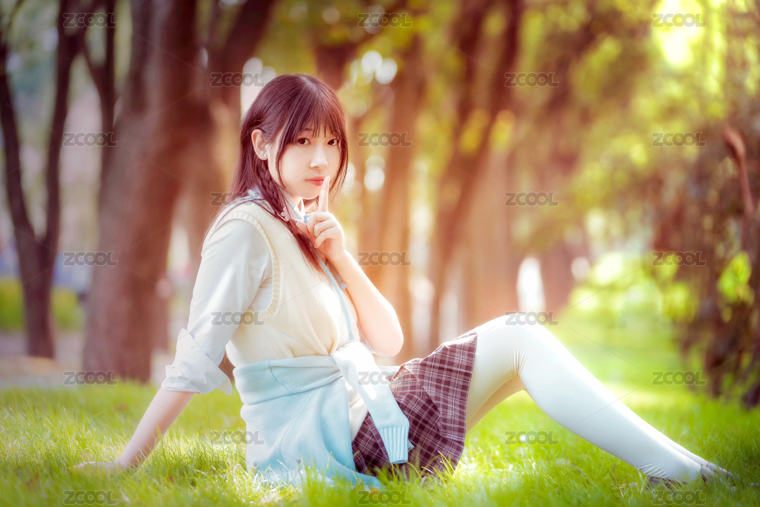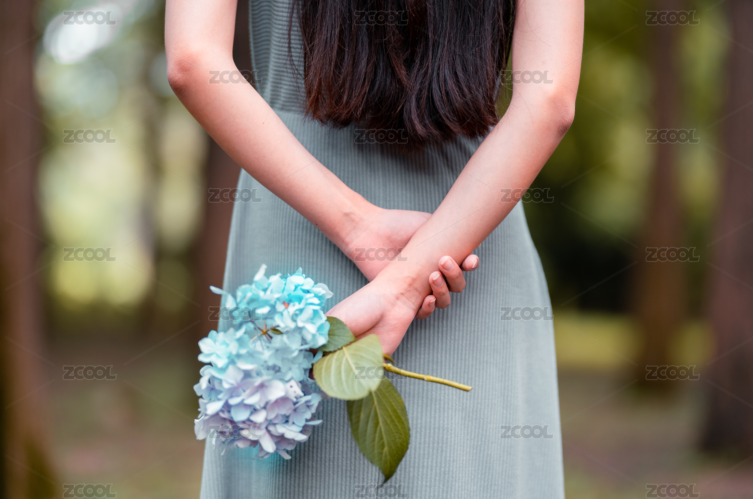 身穿藍(lán)色的長(zhǎng)裙的漂亮女生站在樹旁邊