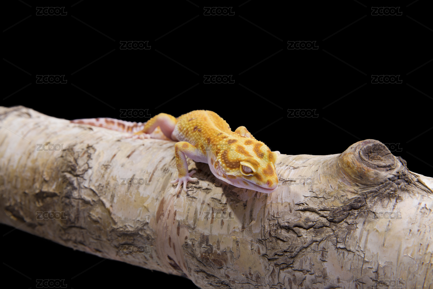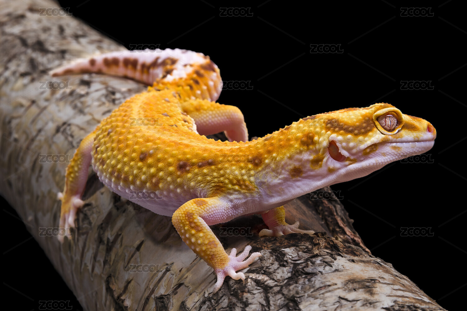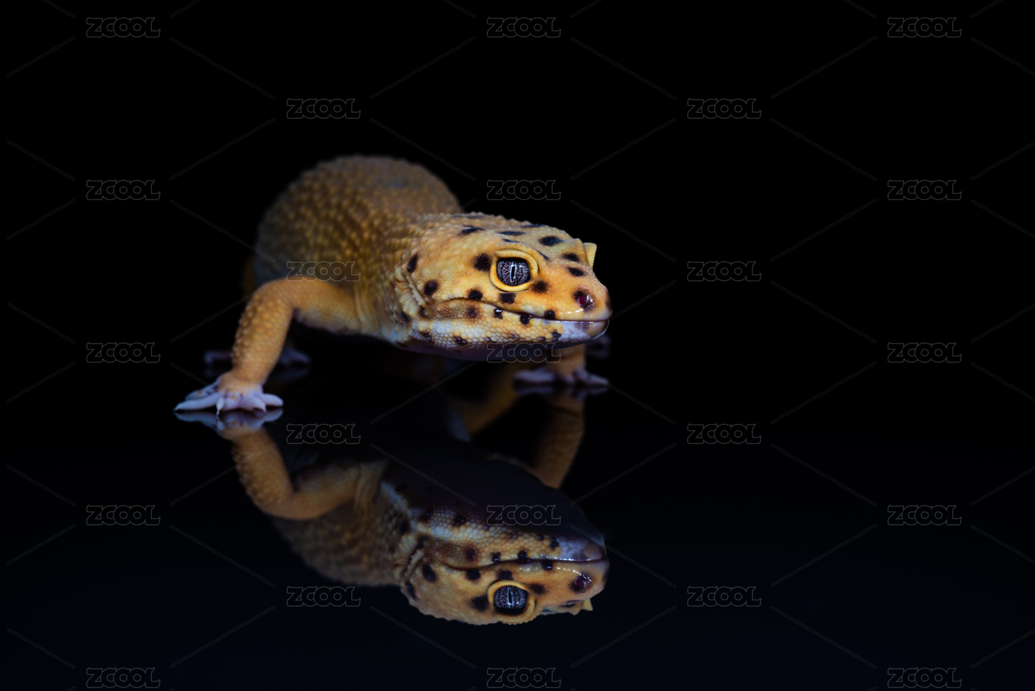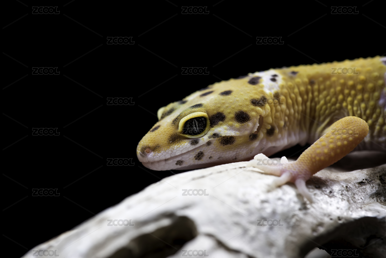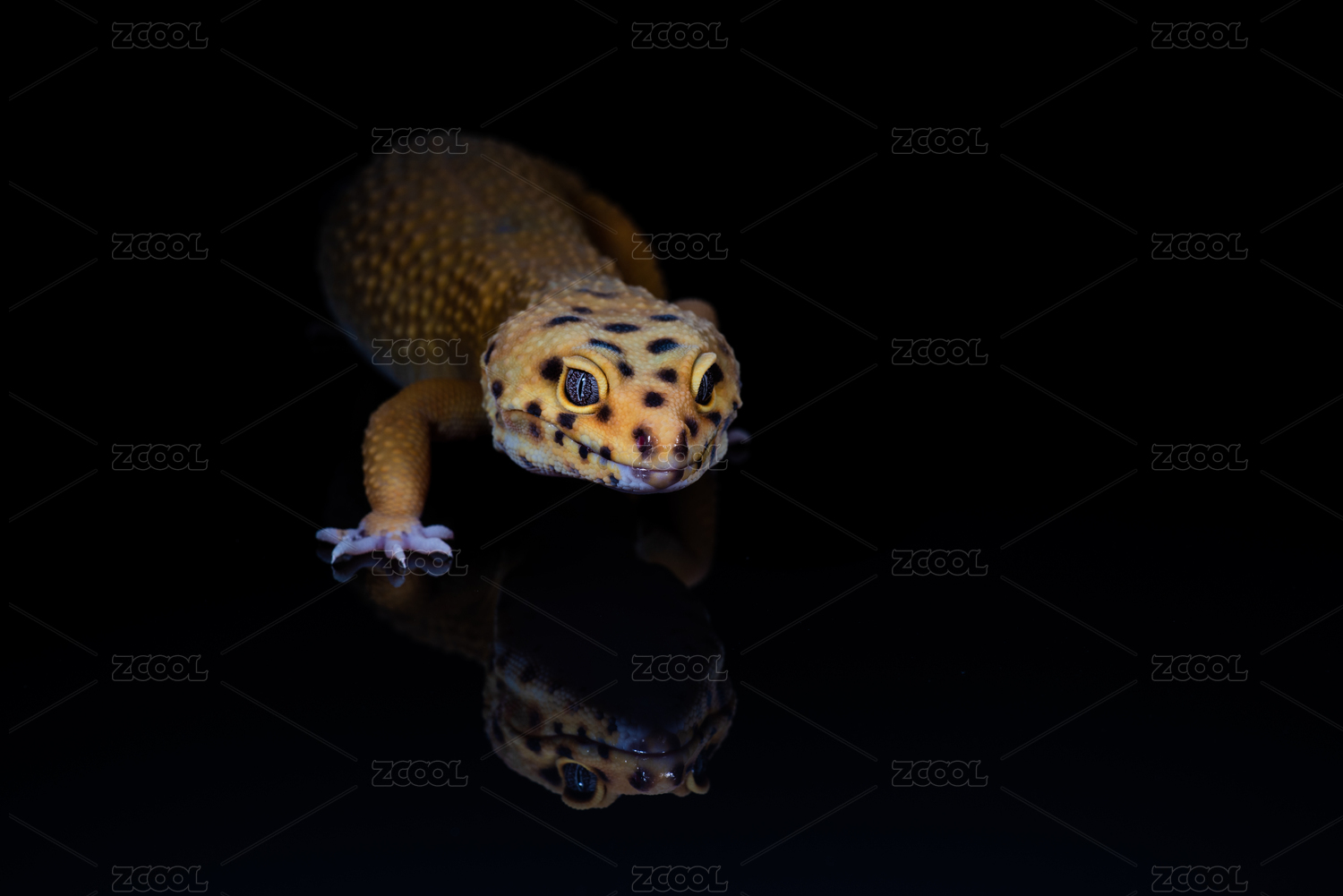 黑色背景上的黃色豹紋守宮