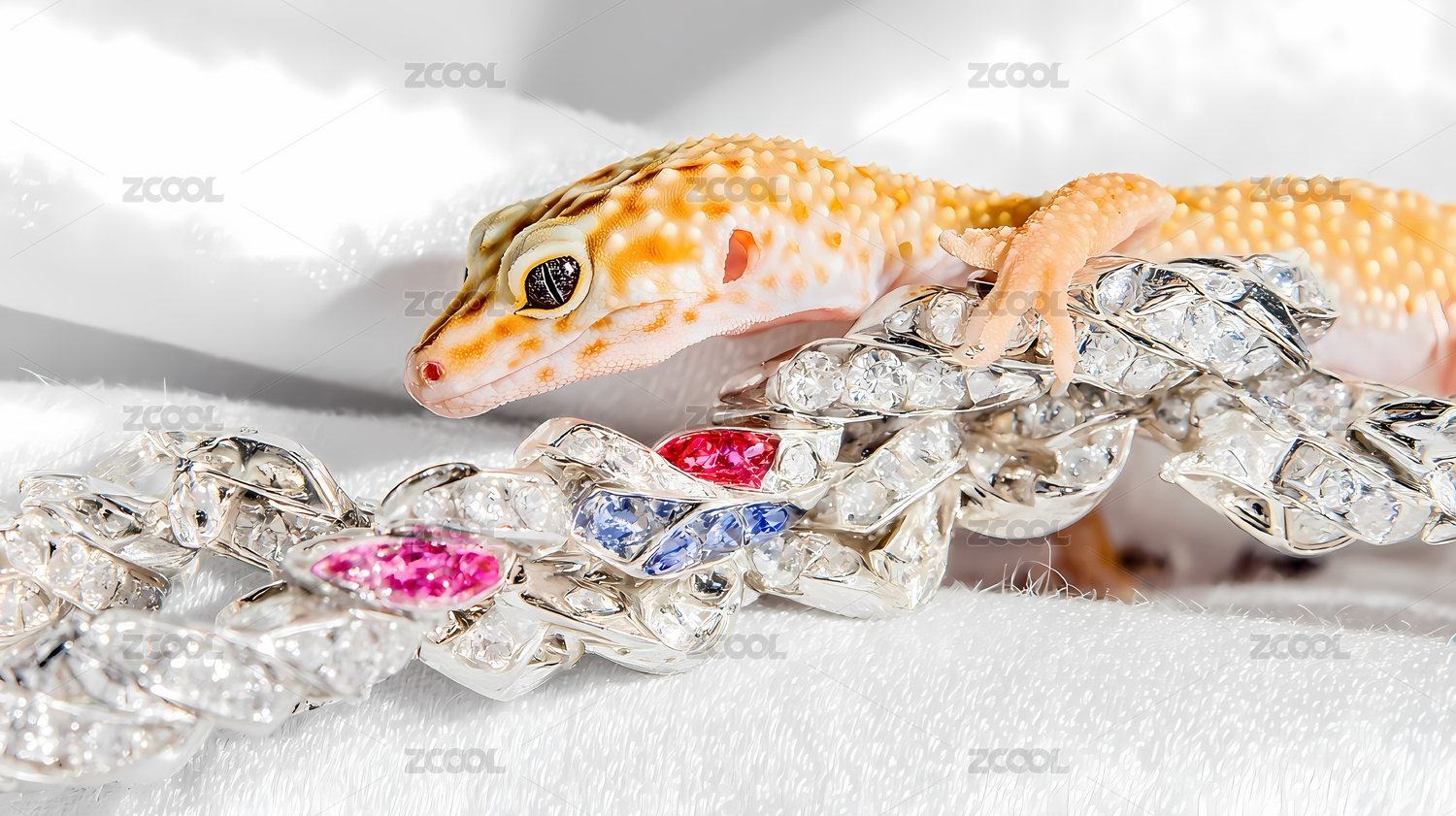豹紋守宮攀爬鑲寶石項鏈