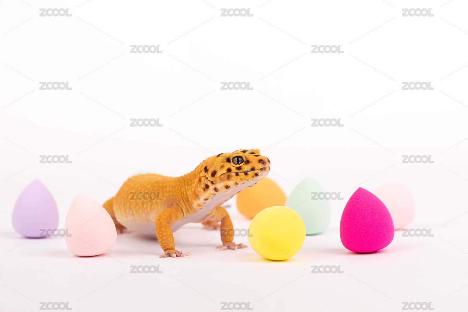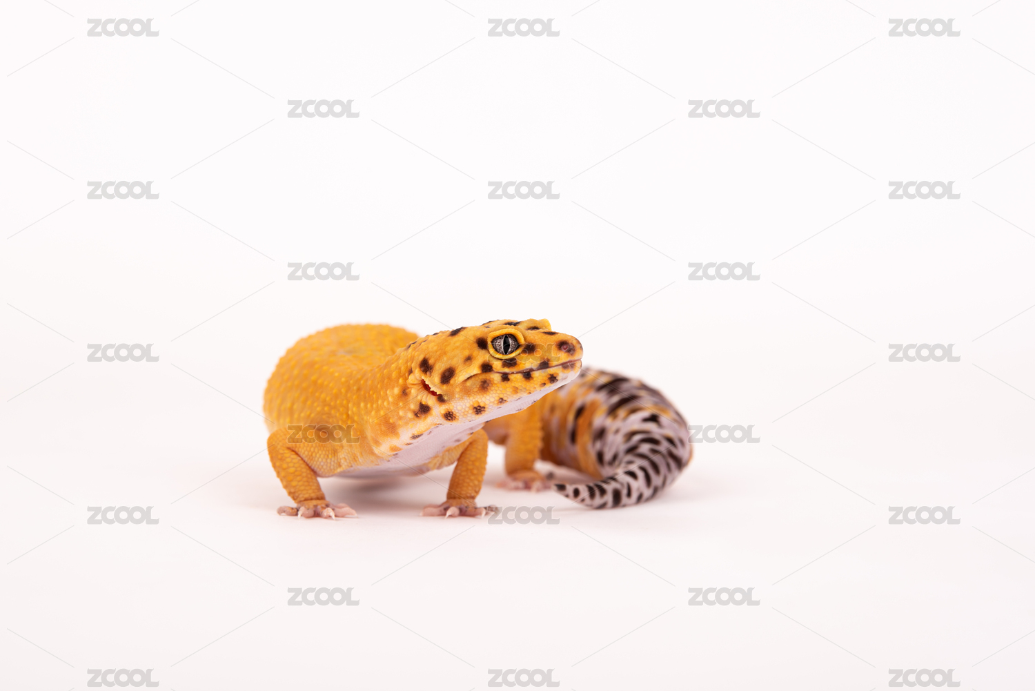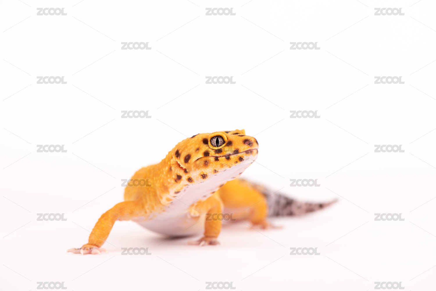 影棚白色背景中的豹紋守宮