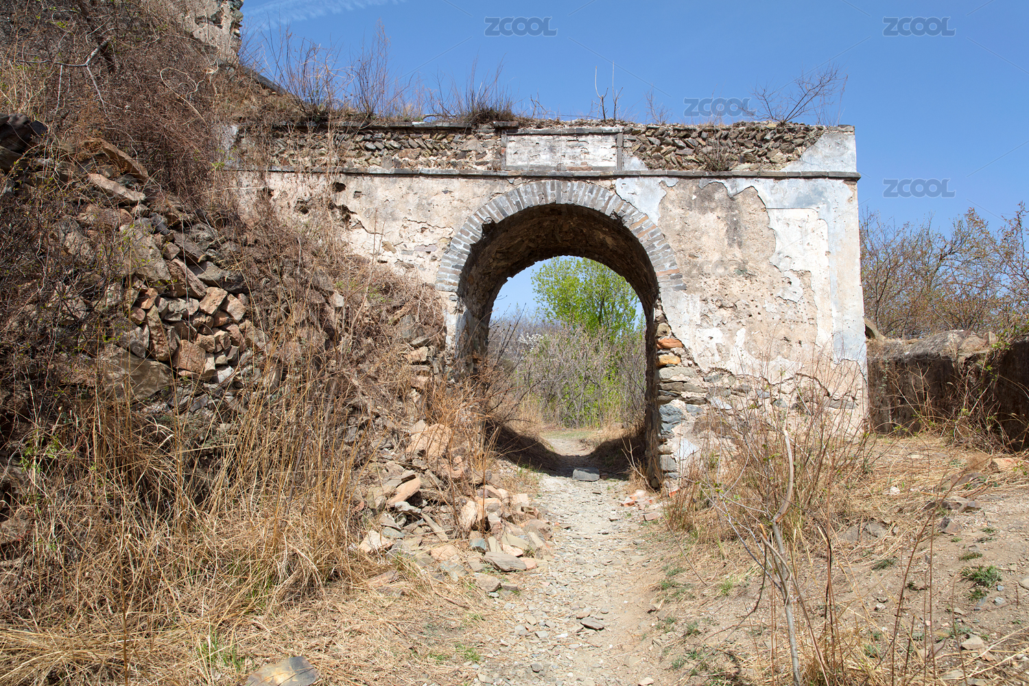 中國(guó)山西省介休市張壁古堡城堡拱門建筑
