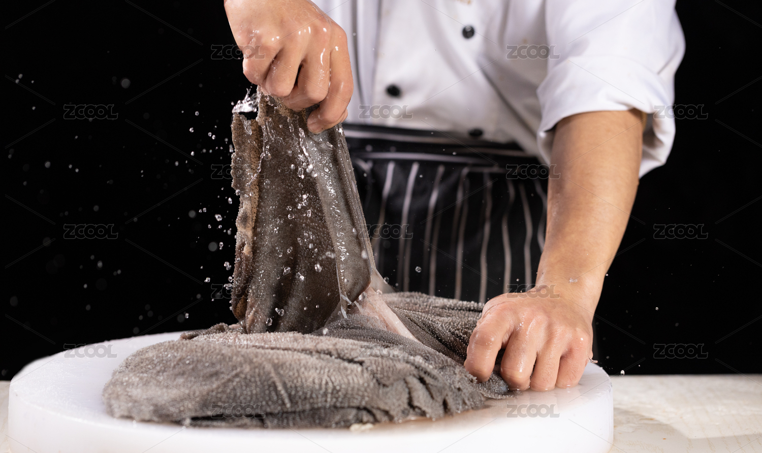 廚師正在手撕鮮牛肚毛肚火鍋毛肚