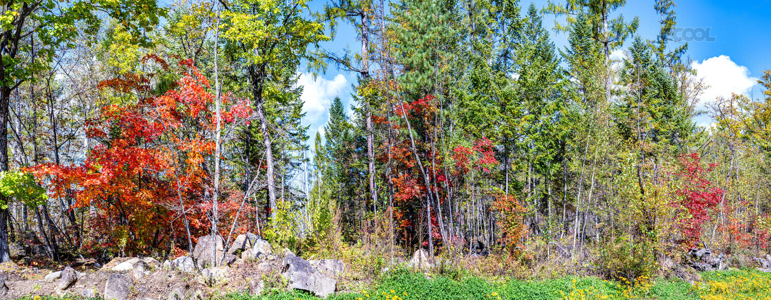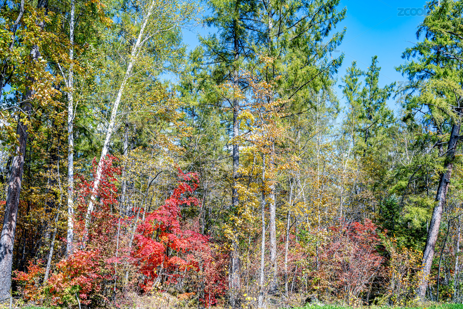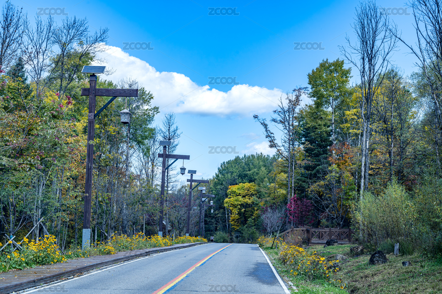 長白山魯能勝地度假區(qū)公路一側(cè)的彩林