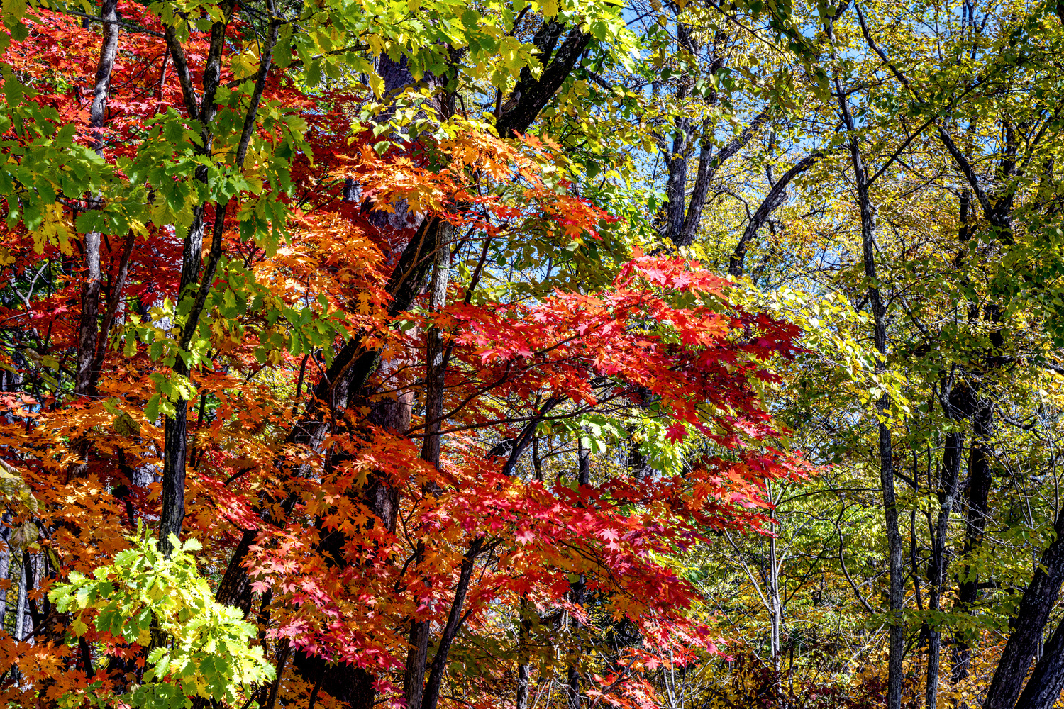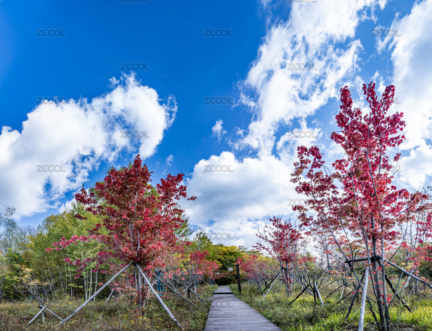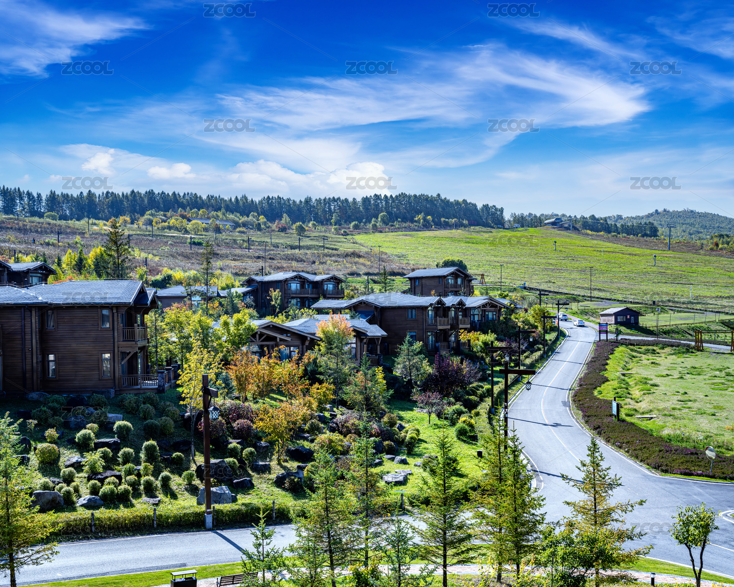 長白山魯能勝地度假區(qū)公路一側(cè)的彩林