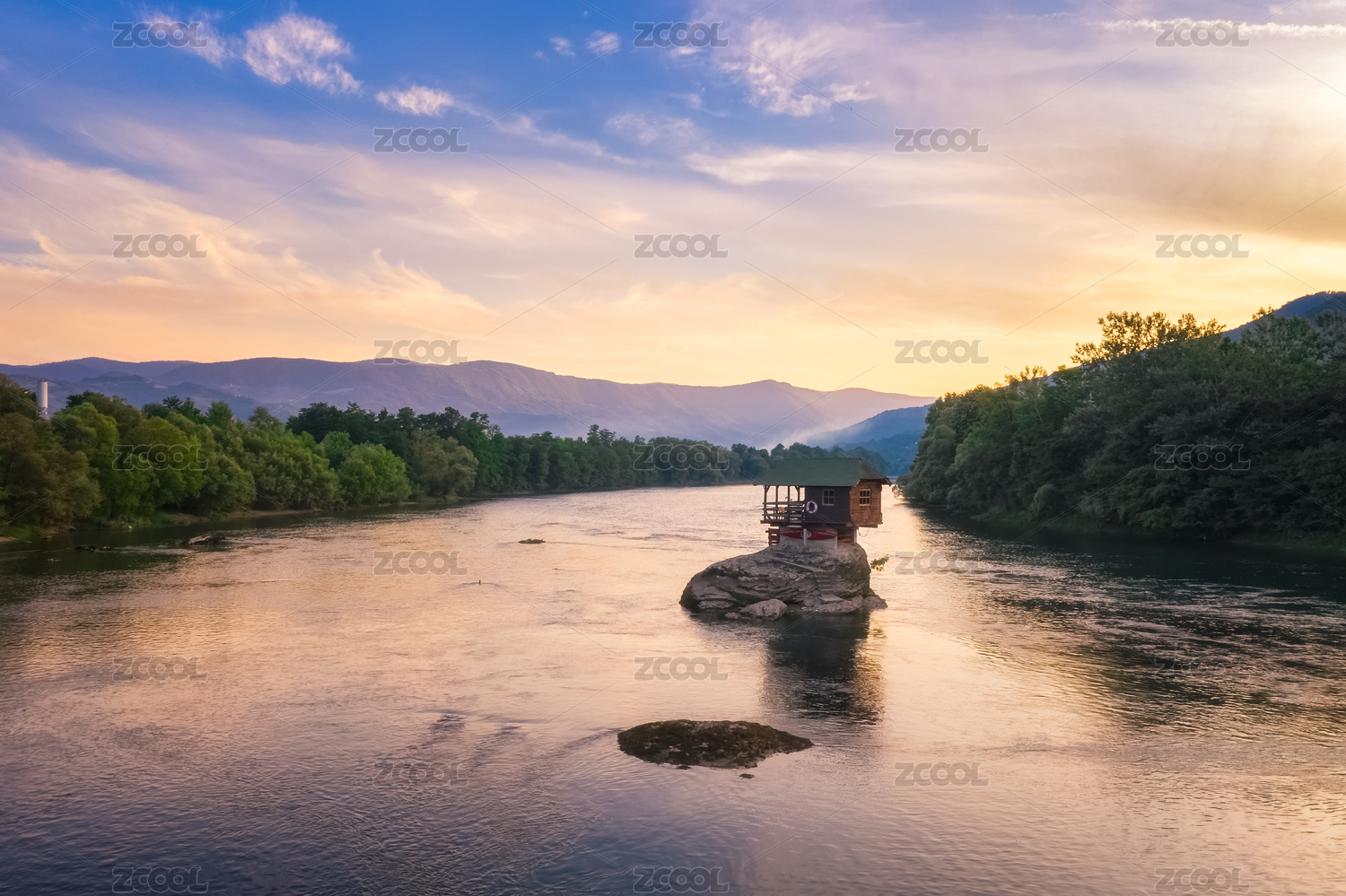 東歐塞爾維亞河波黑邊境的河中小屋