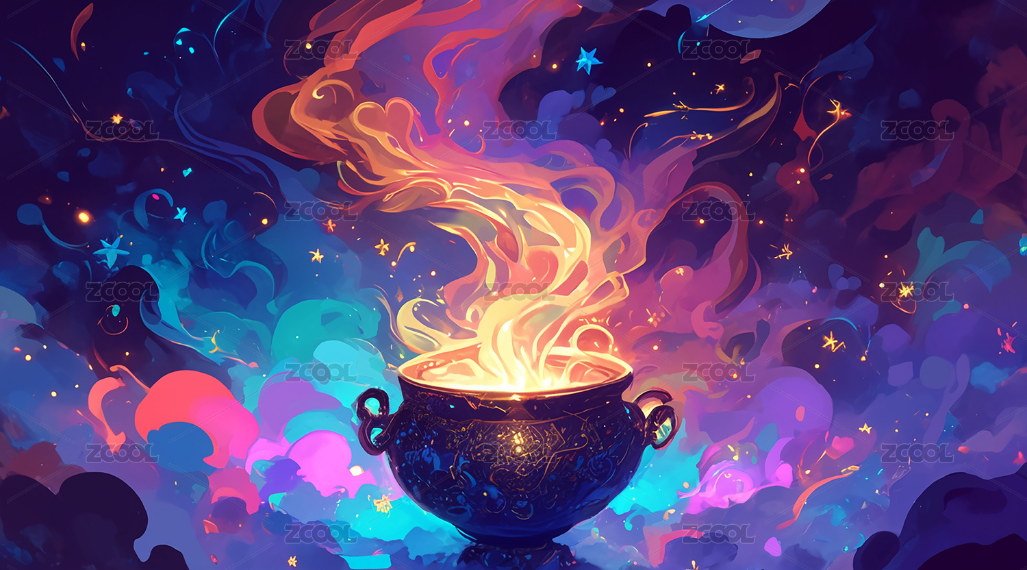 卡通魔法鍋與星星