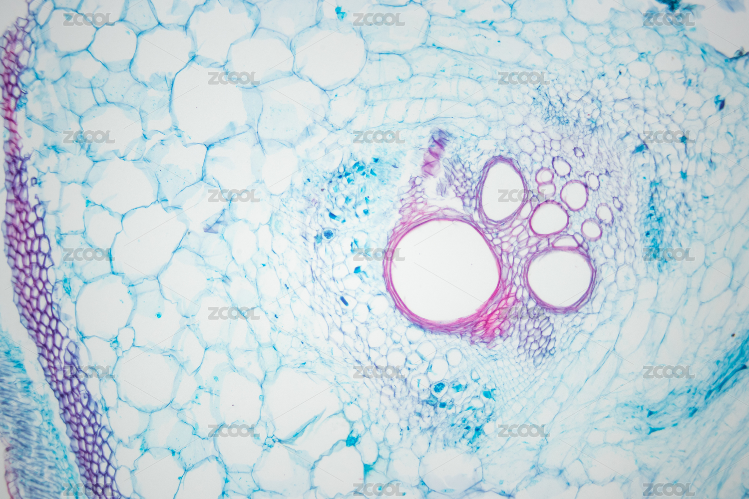 光學(xué)顯微鏡下的雙子葉植物(南瓜)莖初生結(jié)構(gòu)