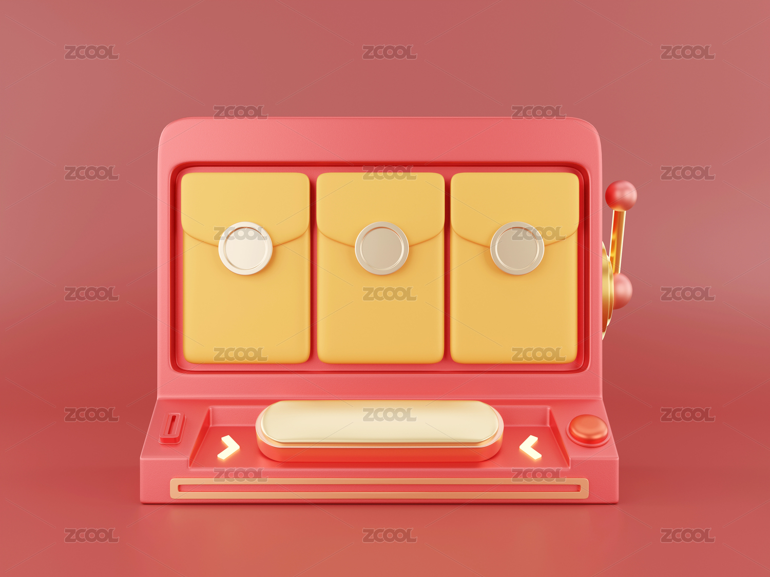 金色紅包獎品的三維紅色卡通游戲抽獎機