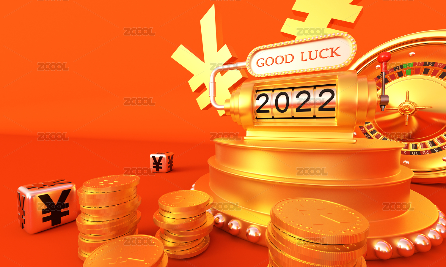 2022與人民幣符號,博彩機與好運來臨