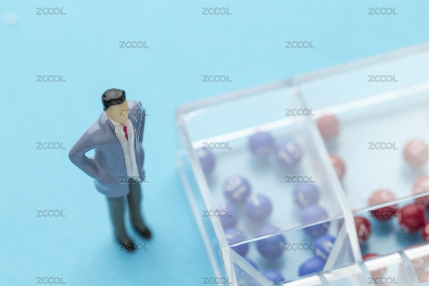 鍵盤上的紅色骰子與微縮人偶