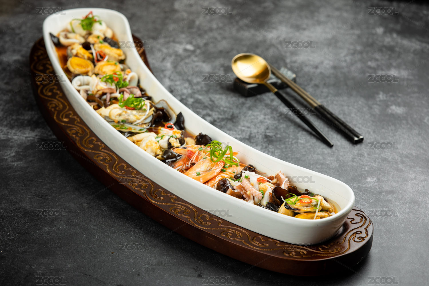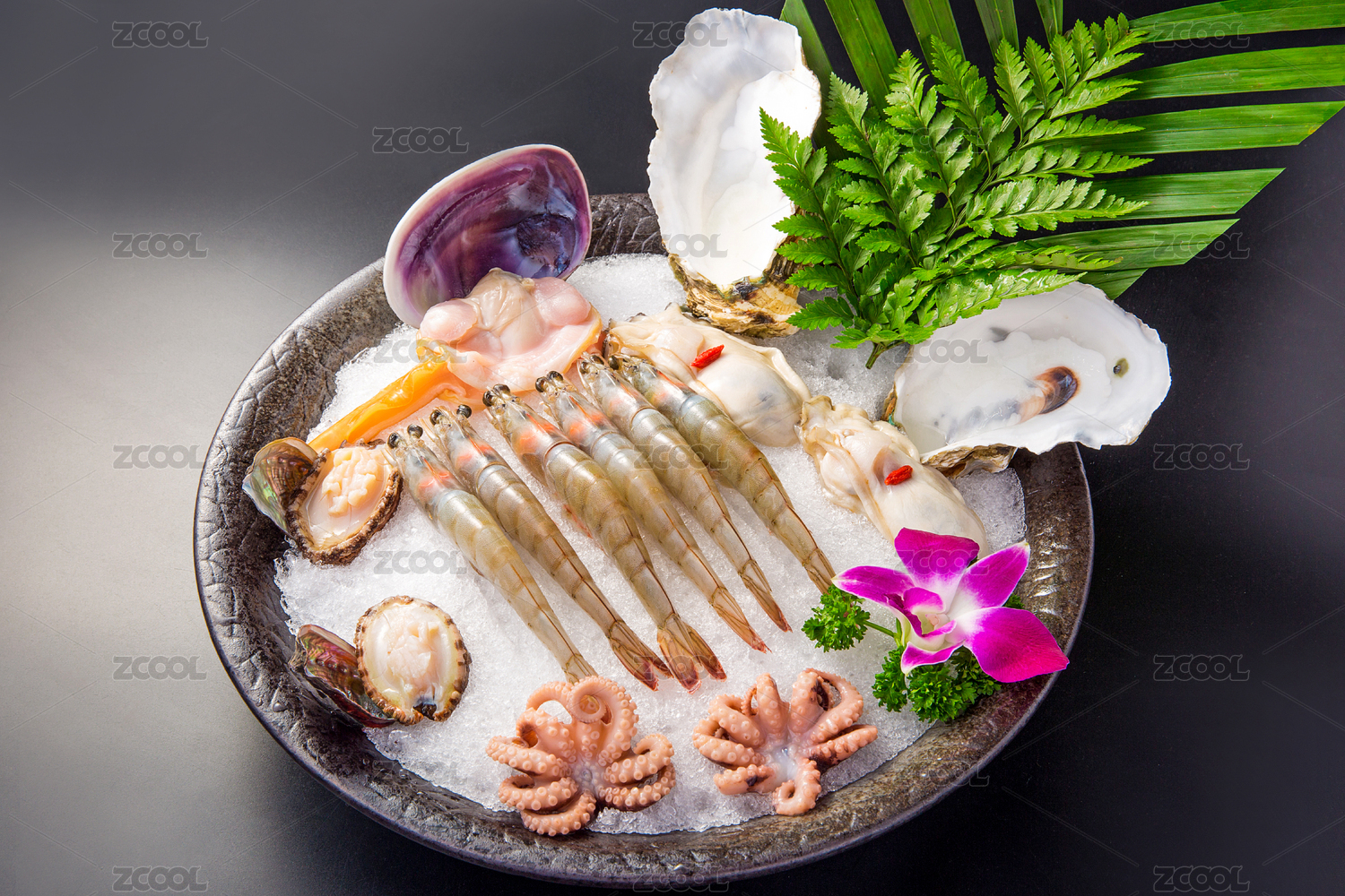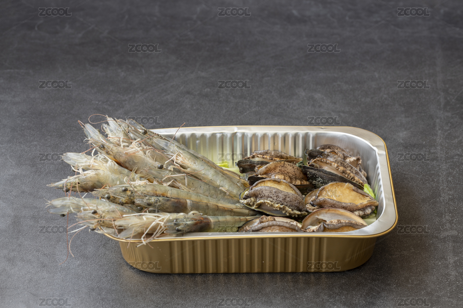 海鮮拼盤基圍蝦和鮑魚(yú)