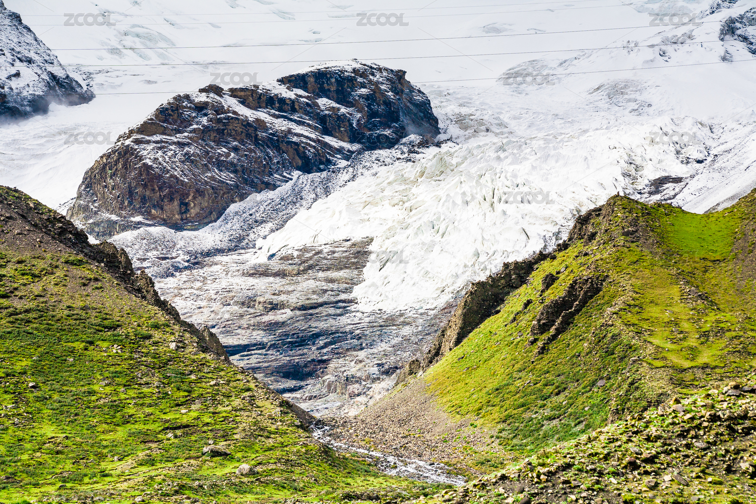 中國(guó)西藏浪卡子縣雪山下的瀑布